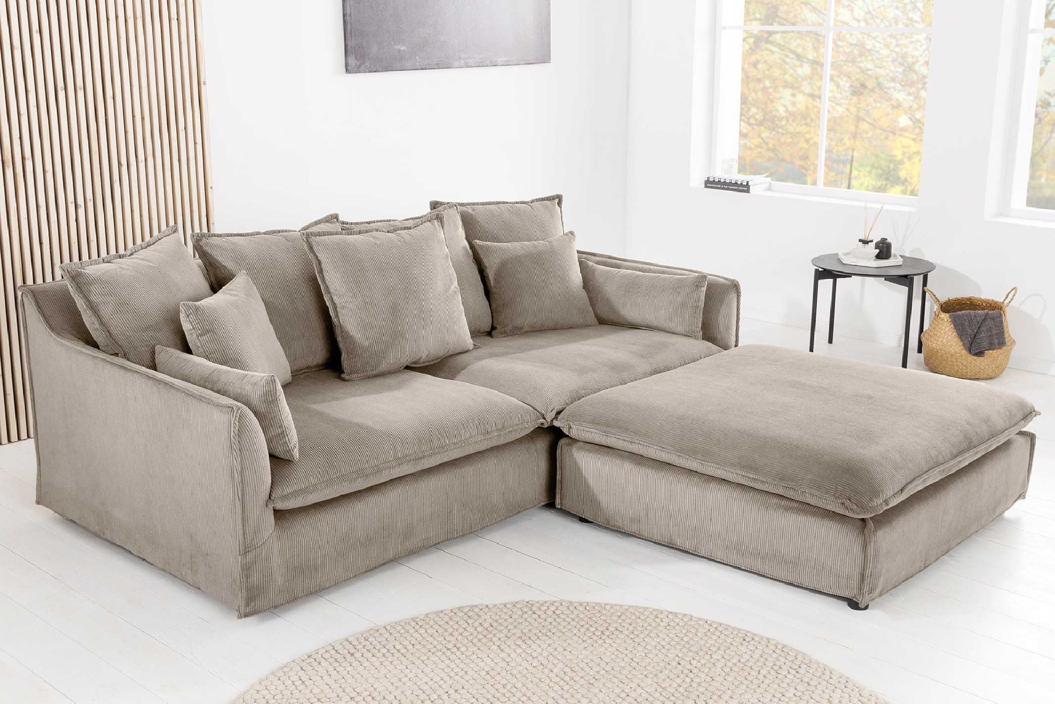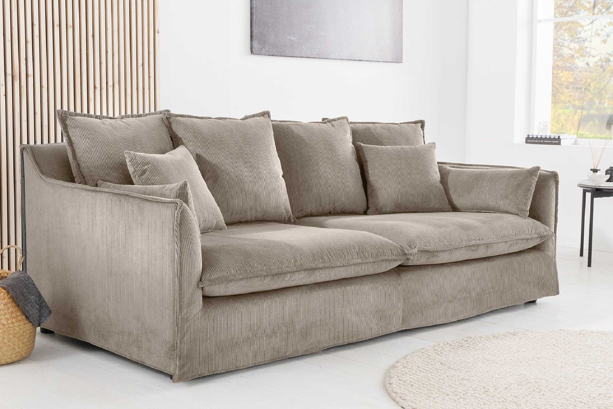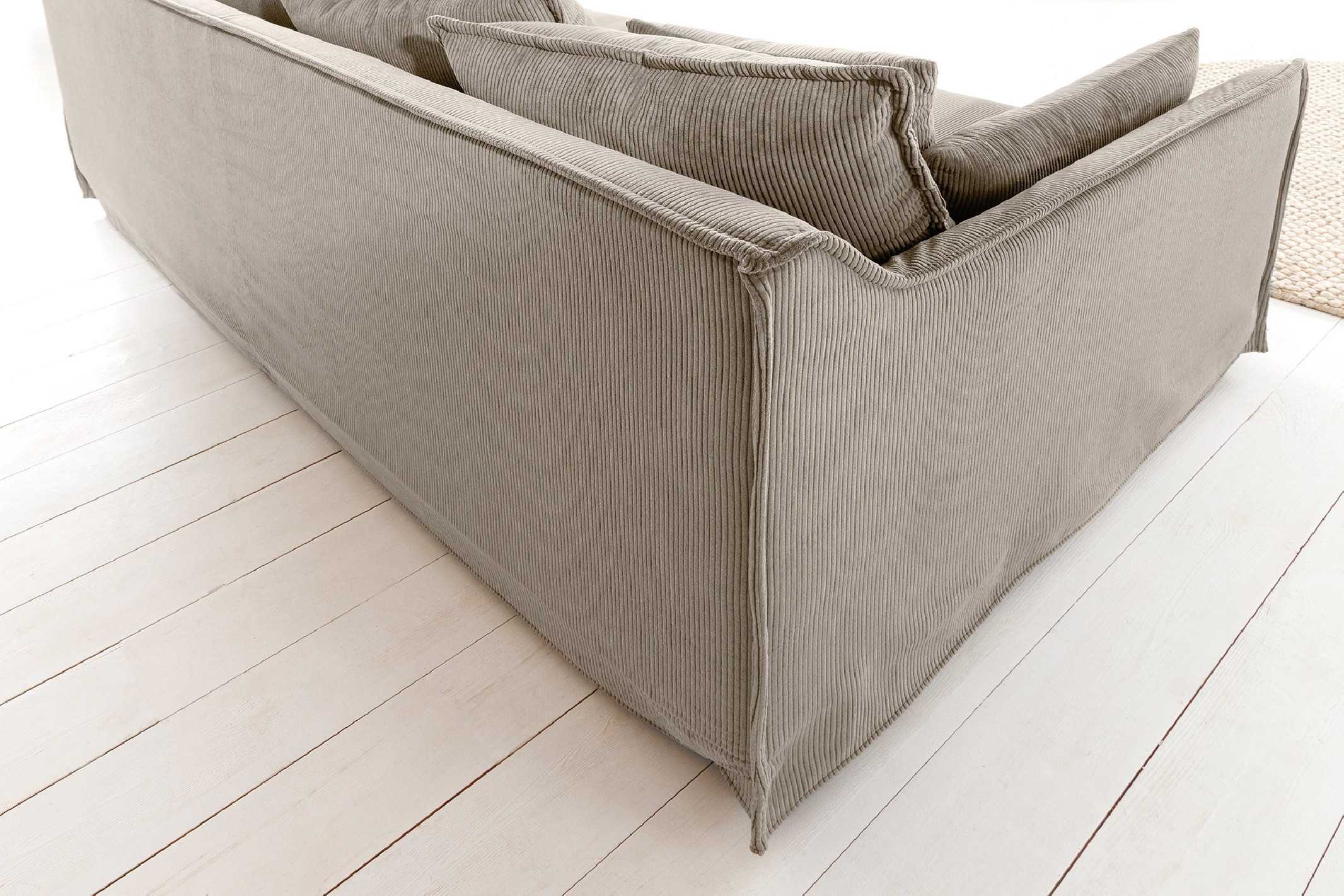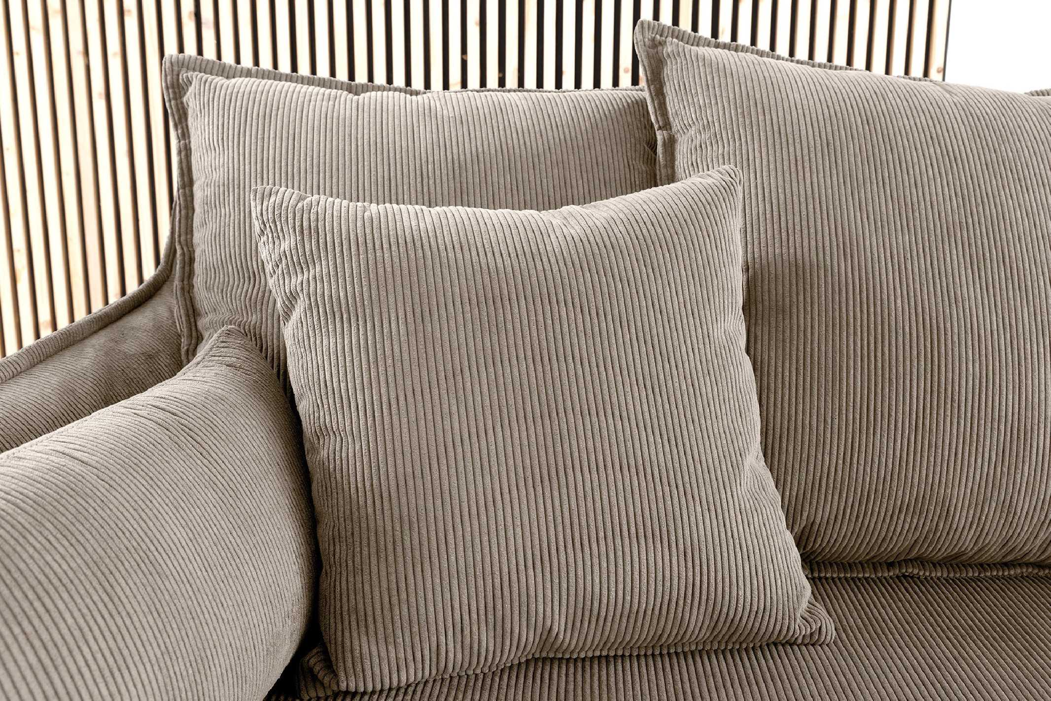 Nebula är den där 3-sits soffan som direkt blir hemmets naturliga mittpunkt. Den mjuka greige kordklädseln ger ett varmt, ombonat uttryck och bjuder in till långa kvällar av avkoppling. Perfekt både som lyxig vardagssoffa och som skön dagbädd när du vill sträcka ut dig ordentligt. Den generösa sittytan gör Nebula till en idealisk sammetssoffa/kordsoffa för både små och stora hem. Klädseln i slitstark kord (88% polyester, 12% nylon) är avtagbar vilket underlättar skötsel och gör soffan extra praktisk i vardagen. Den stabila stommen i poppelträ ger god hållbarhet och trygg komfort, medan den djupa sittytan och fjäderkärnan i sitsen skapar en inbjudande loungkänsla. Nebula är en stilren 3-sits soffa i greige som passar lika bra i modern minimalistisk inredning som i mer bohemiska vardagsrum. Mått: Bredd x Höjd x Djup 202 x 88 x 105 cm