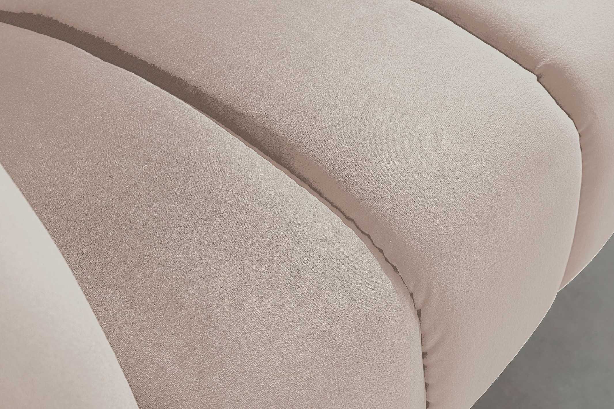 AURORA är en elegant 2-sits sammetsoffa som förvandlar vardagsrummet till en inbjudande lounge. Den mjuka champagnefärgen och de slanka svarta benen skapar en sofistikerad, modern känsla som passar perfekt i mindre utrymmen utan att kompromissa med stilen. Klädd i strukturerad sammetsklädsel i champagne ger denna soffa en lyxig men lättskött yta som känns behaglig mot huden. Den tidlösa designen med raka linjer och svarta metallben gör AURORA enkel att kombinera med både moderna och klassiska inredningar. Den tåliga sammeten i 100% polyester gör soffan slitstark och perfekt som vardaglig sammetsoffa i både lägenhet och mindre vardagsrum. Mått: Bredd x Höjd x Djup 165 x 78 x 90 cm