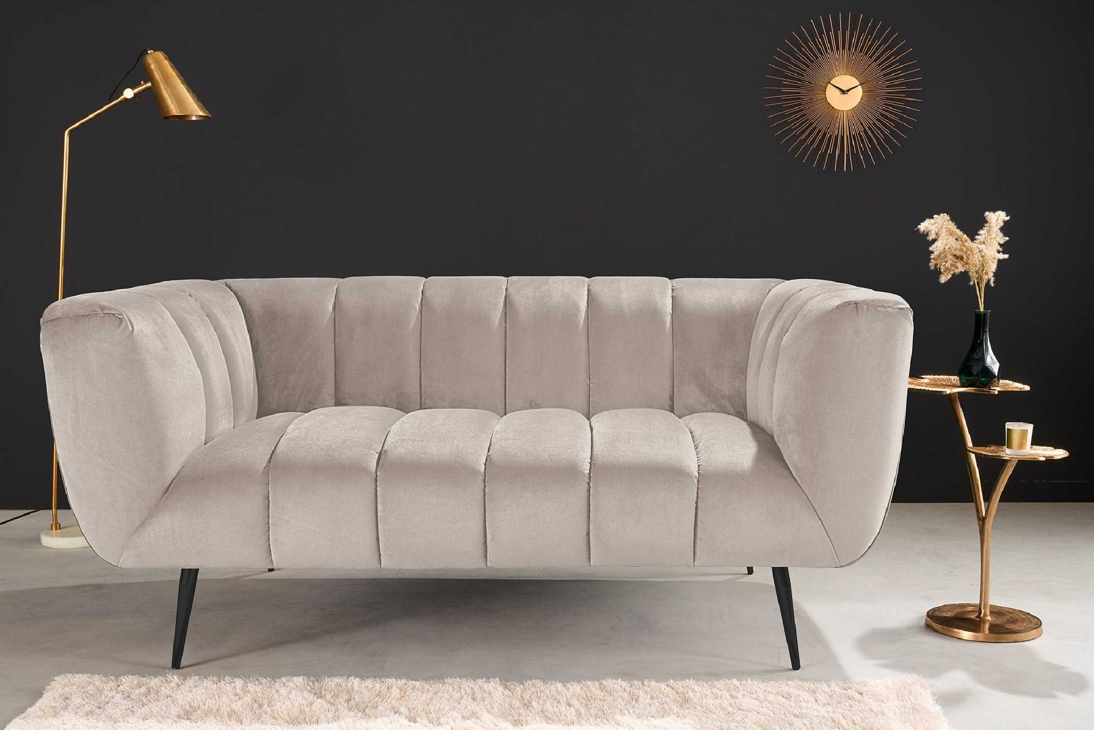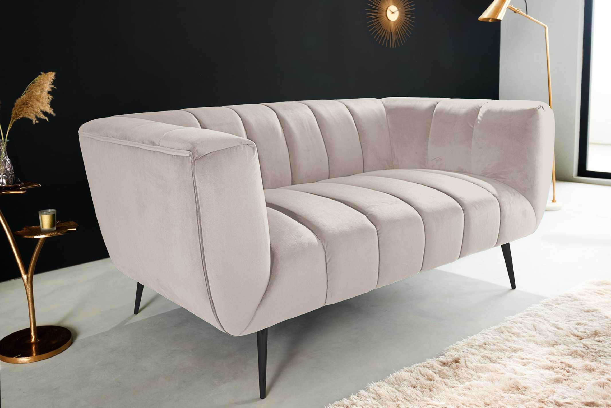 165CM 2 - SITS SAMMETSSOFFA, CHAMPAGNE & SVARTA METALLBEN