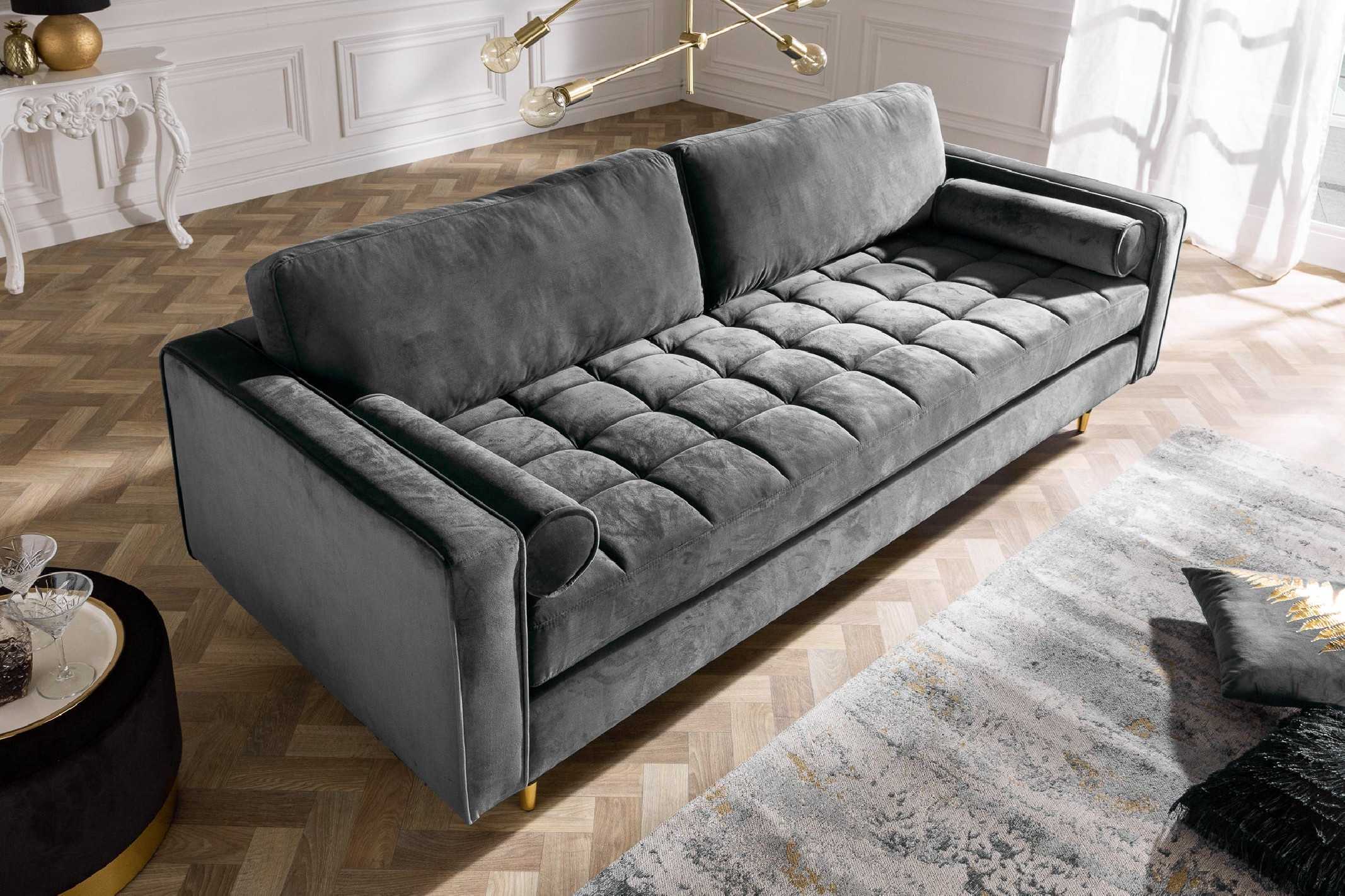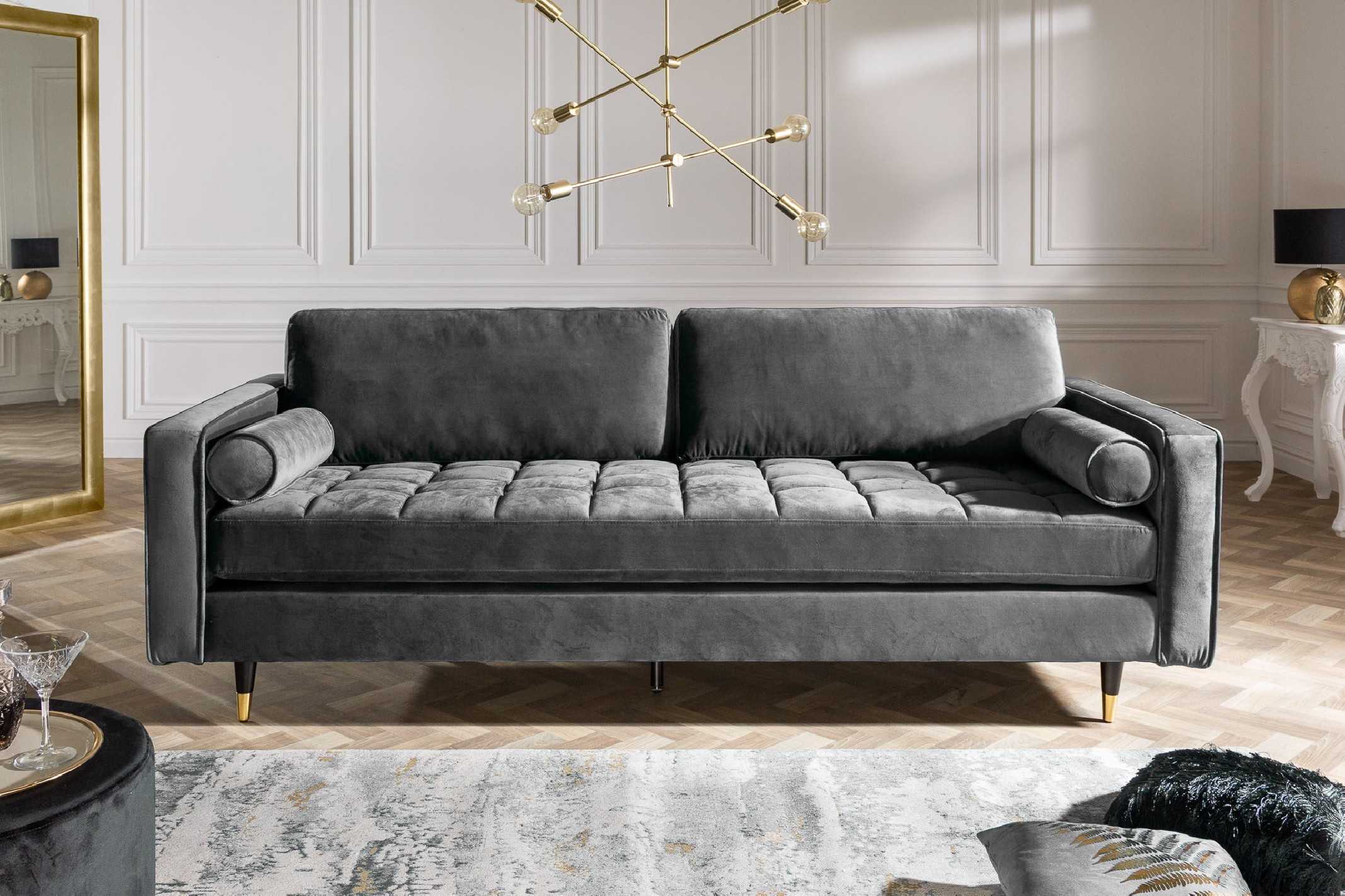 LYRA sammetssoffa förvandlar ditt vardagsrum till en lugn och lyxig oas. Den generösa 3-sitsdesignen i mjuk grå sammet bjuder in till långa, avkopplande stunder och ger rummet en elegant, tidlös känsla. Denna 220 cm breda sammetsoffa är klädd i slitstark sammet i 100% polyester som både känns len mot huden och är enkel att sköta. De massiva träbenen ger stabilitet och en stilren, modern karaktär som passar lika bra i en klassisk som i en minimalistisk inredning. LYRA är den perfekta kombinationen av komfort och design – en grå sammetssoffa som snabbt blir hemmets naturliga mittpunkt. Mått: Bredd x Höjd x Djup: 220 x 95 x 85 cm Benens höjd: 16 cm Vikt: 59.6 kg
