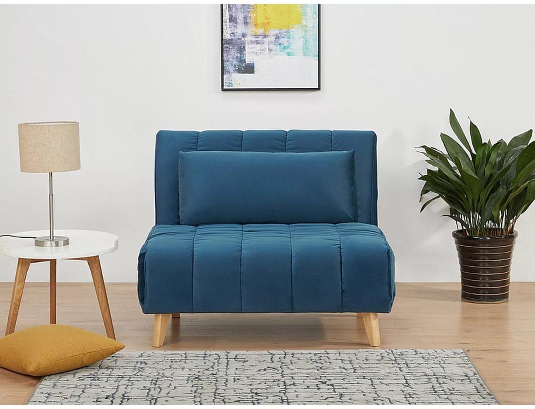 FÅTÖLJ 1 - SITS, SAMMET BLÅ, MED SÄNGFUNKTION