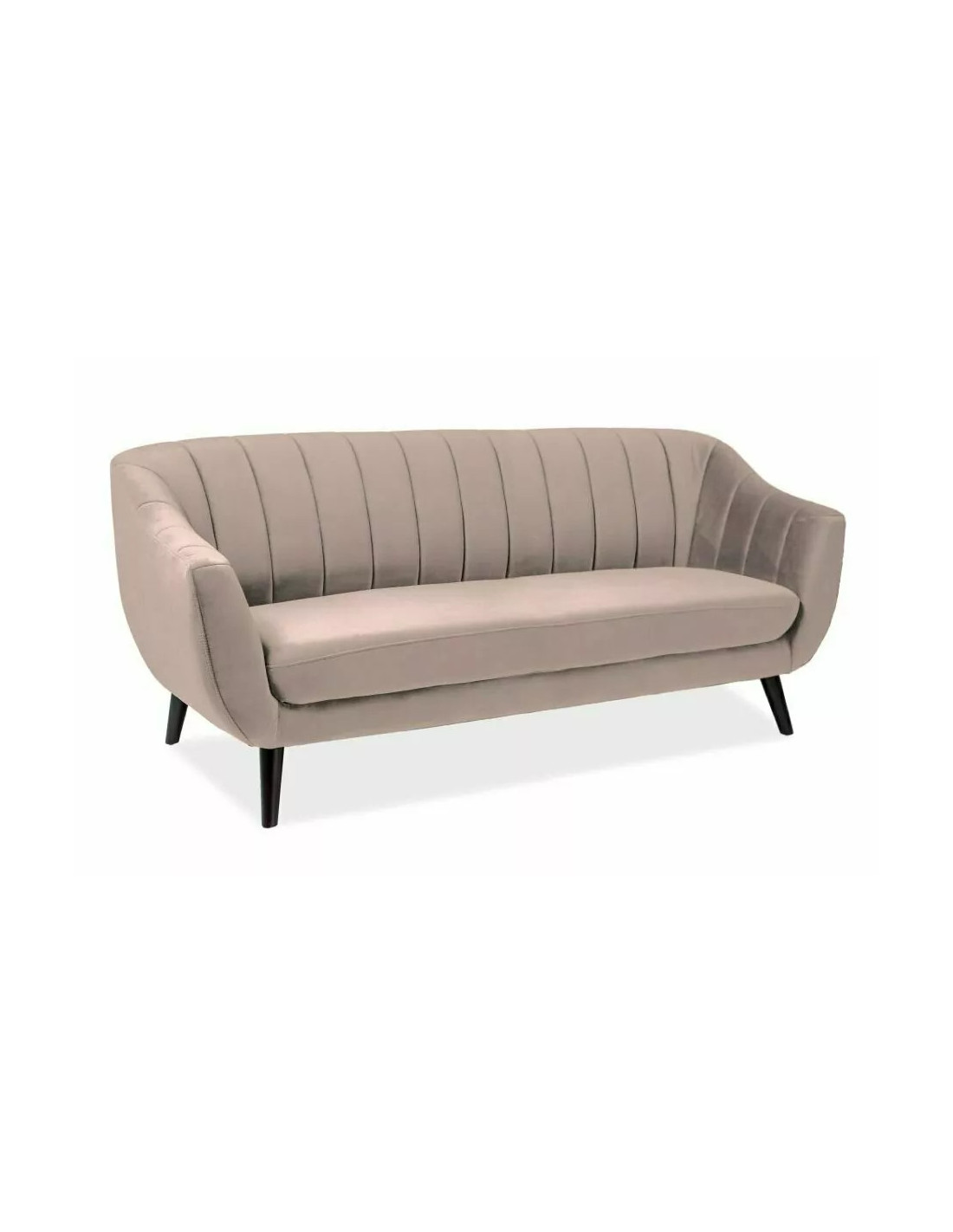 Soffan har en stabil stomme i trä och är klädd i slitstark sammetstyg som både känns lyxig och är behaglig att sitta i under längre stunder. Den fasta sitshöjden ger bra komfort för upp till tre personer och den robusta konstruktionen är anpassad för daglig användning i HoReCa-miljö.