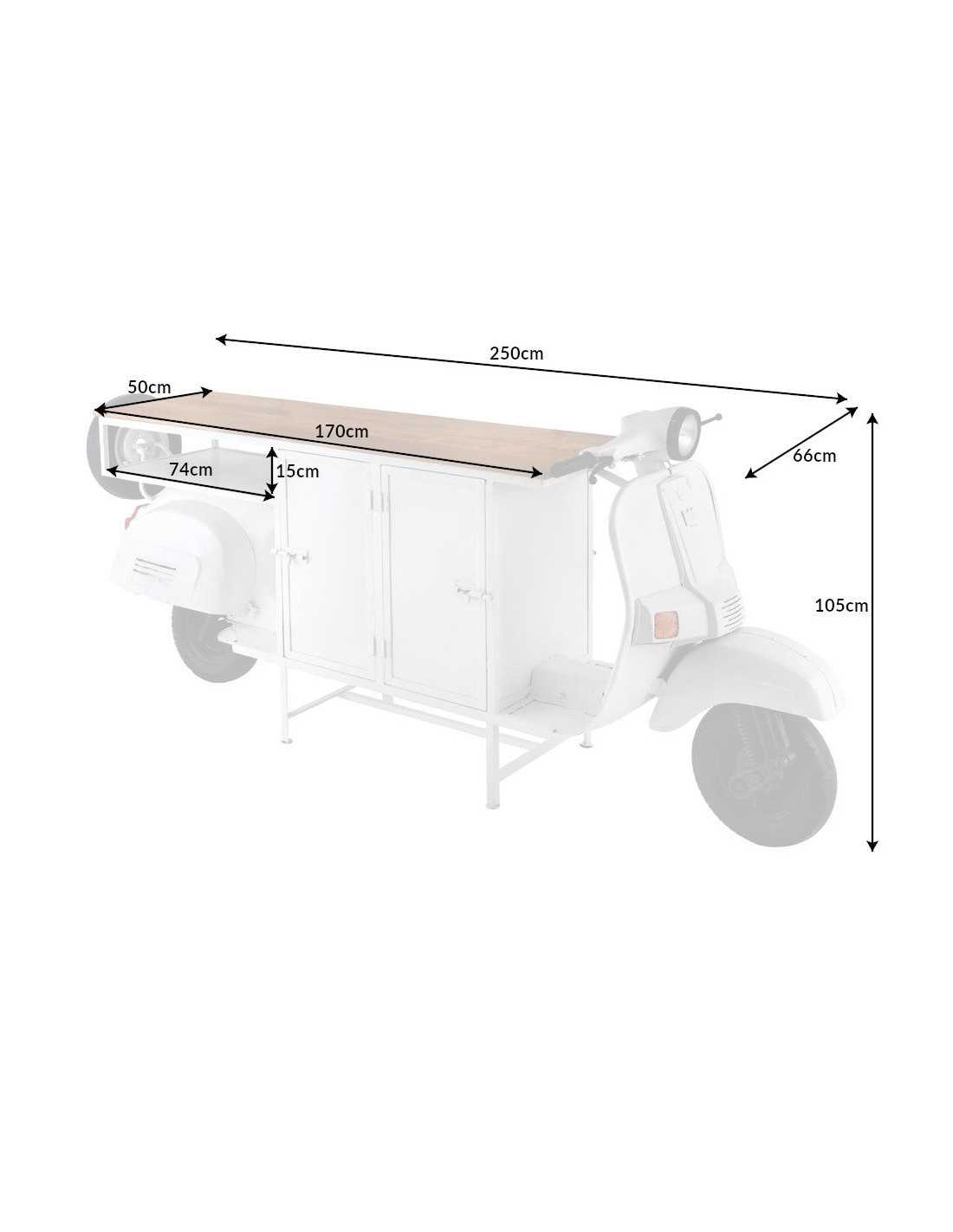 QUASAR barskåp förvandlar din hemmabar till rummets mittpunkt. Den långa, karismatiska designen i naturfärgat trä och metall ger en lyxigt industriell känsla och gör varje kväll till en upplevelse. Detta exklusiva barkabinett är tillverkat i lackerat mangoträ kombinerat med robust metall, vilket ger en stabil och hållbar möbel med tydlig karaktär. Den naturliga träådern skapar värme, medan metallelementen ger en modern barinredning med attityd. Perfekt som barbord, barskåp eller serveringsmöbel i vardagsrum, kök eller lounge där du vill kombinera design och praktisk förvaring för glas, flaskor och barutrustning. Mått: Bredd x Höjd x Djup 250 x 105 x 66 cm