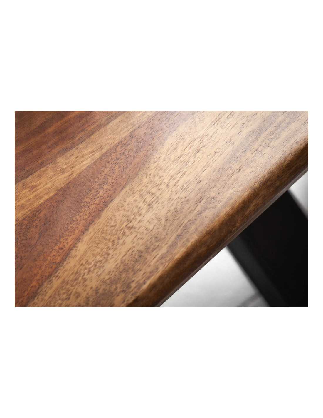 Galaxia matbord förvandlar ditt matrum till hemmets mittpunkt med sitt kraftfulla uttryck och varma trätoner. Den generösa längden på 200 cm bjuder in till långa middagar, sociala kvällar och vardag med stil. Bordsskivan i massiv sheeshamträ har ett naturligt, levande ådringsmönster som gör varje bord unikt. Den robusta metallstommen ger en stabil konstruktion och skapar en modern industrikänsla som passar lika bra i ett stilrent kök som i en rustik matsal. Detta matbord i trä och metall är både slitstarkt, lätt att sköta och en perfekt bas för en tidlös inredning. Mått: Bredd x Höjd x Djup: 200 x 78 x 100 cm Tjocklek bordsskiva: 4 cm Avstånd golv till bordskant: 74 cm