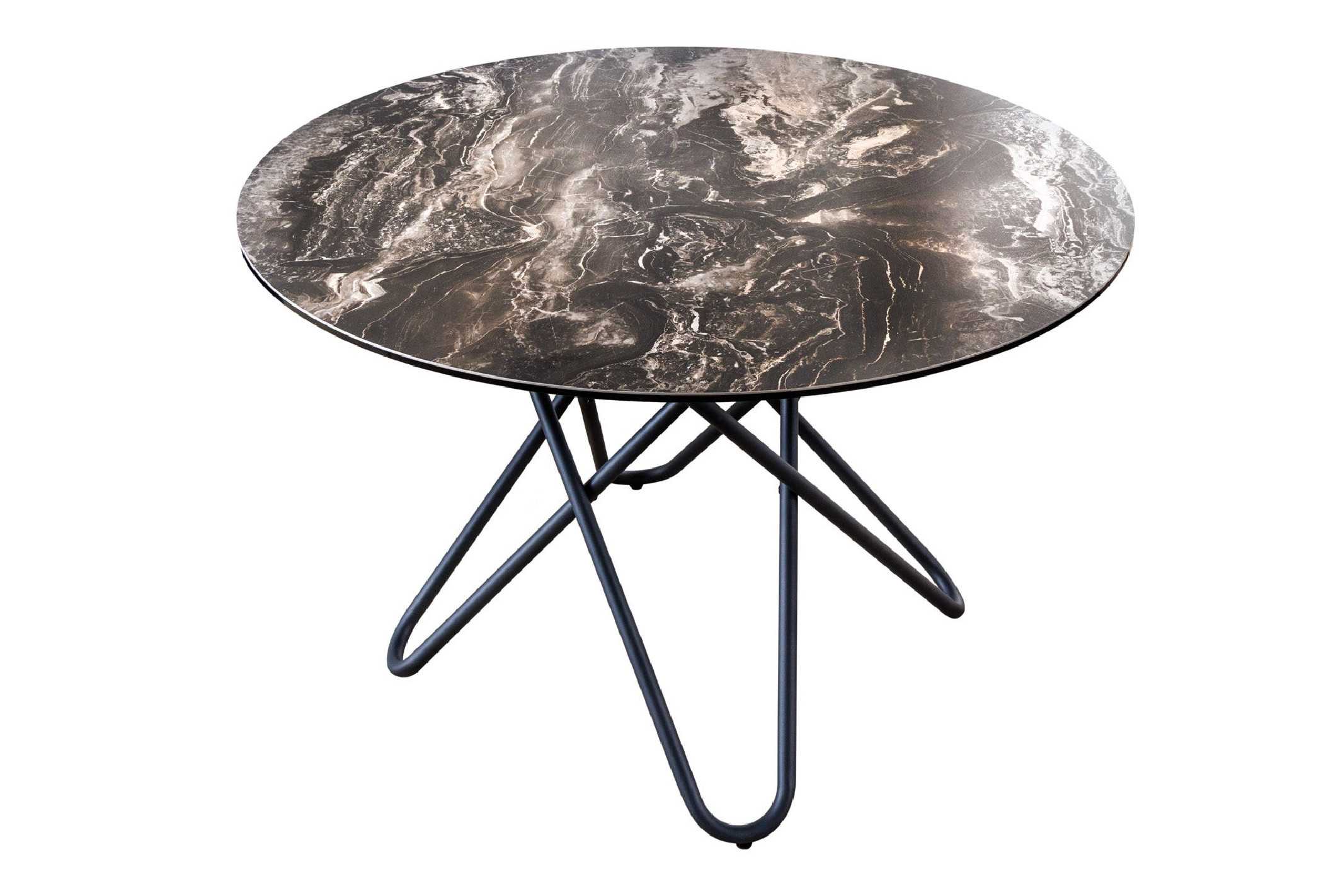 120CM RUNDT MATBORD, KERAMIK NATURSTEN, SVART METALL