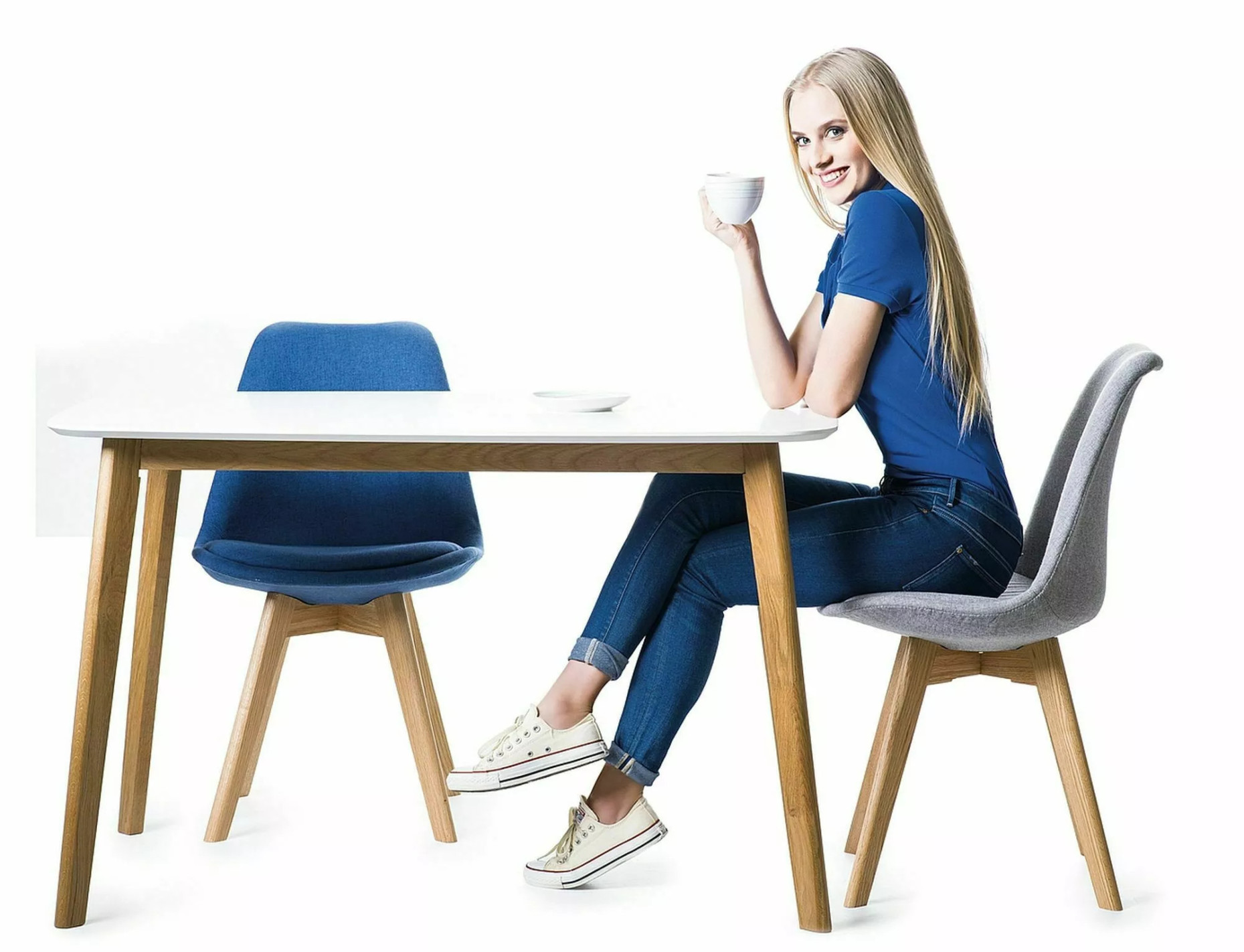 KURVA I är ett stilrent matbord med rektangulär form som passar perfekt i både moderna och klassiska kök och matrum. Den vita bordsskivan skapar en ljus och luftig känsla, medan ben och stomme i ekfärg ger en varm och inbjudande kontrast. Bordet rymmer bekvämt upp till sex personer, vilket gör det idealiskt för familjemiddagar och sociala tillfällen.