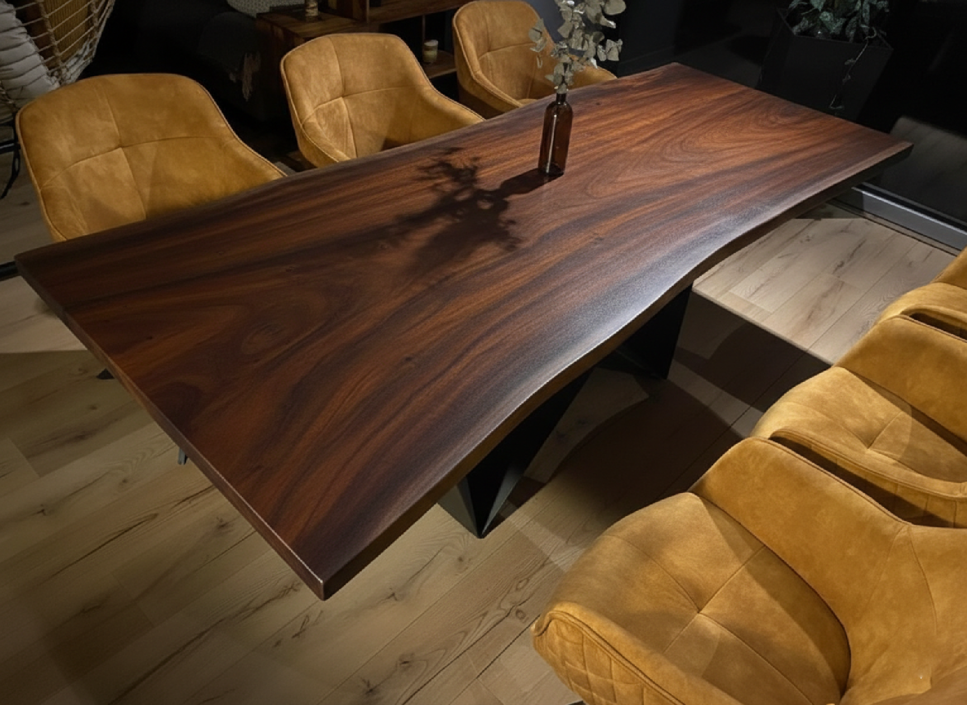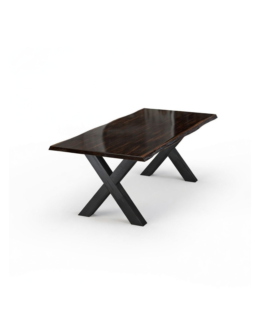 Ett fantastiskt exklusiv bord i massivträ med en unik kombination av modern design och klassisk charm. Bordsskivan är kapad som ett stycke från träd som kan vara 100-tals år gammal. Varje bordsskiva har unik struktur, märken och naturvacker form. Träet är levande och mindre naturliga sprickor förekommer som är en medveten del av materialets signatur.