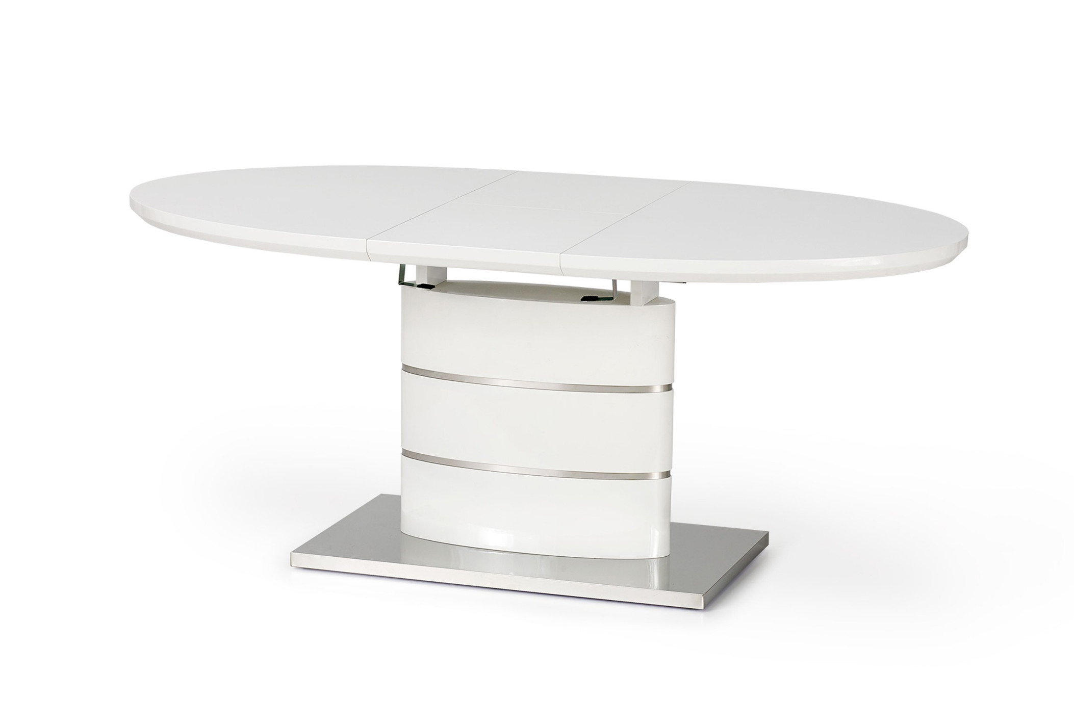 NOEL är ett ovalt vitt utfällbart bord tillverkat i lackerad MDF och rostfritt stål. Mycket snyggt och välgjort matbord som passar utmärkt i matrummet eller som en extra inredningsdetalj på i konferensrummet? NOEL är ett matbord i tidlös design!
