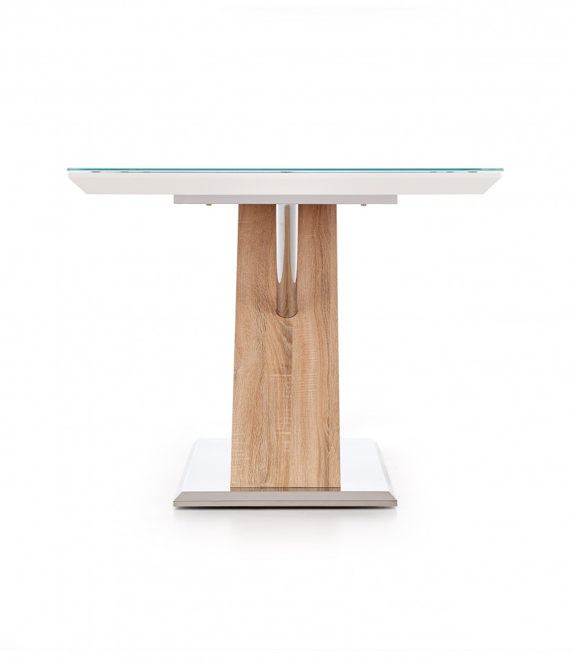 MILLICENT är ett elegant matbord i en modern design. Bordet är tillverkat i vitlackat och sonoma ek som bordsskiva med härdat glas ovanpå, samt underredet i stabilt rostfritt stål. MILLICENT passar perfekt in i hushållet och är lätt att kombinera med ett par stolar för att skapa en snygg och komplett matgrupp.