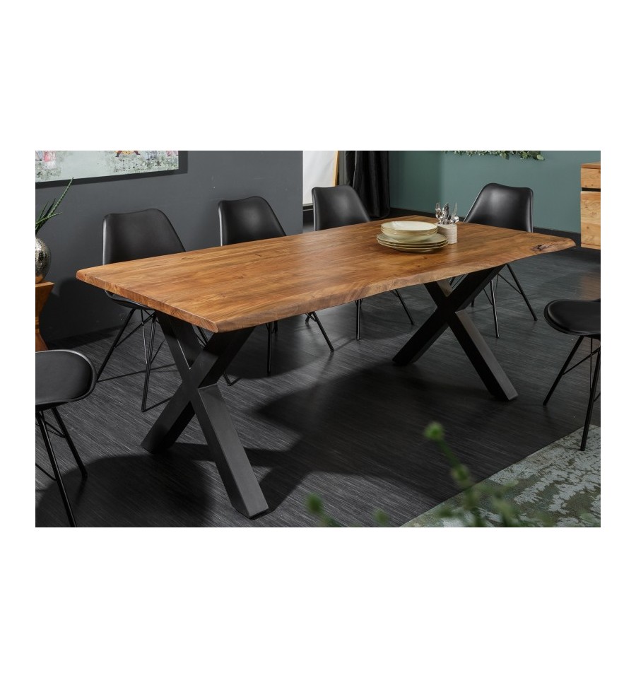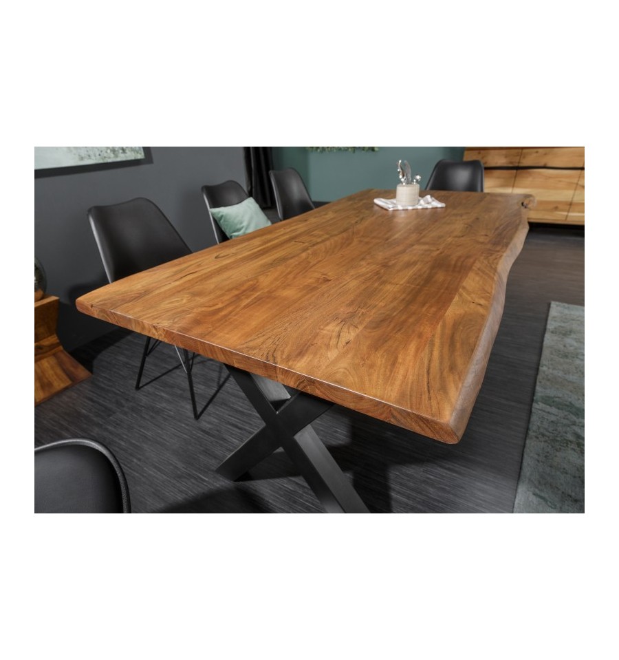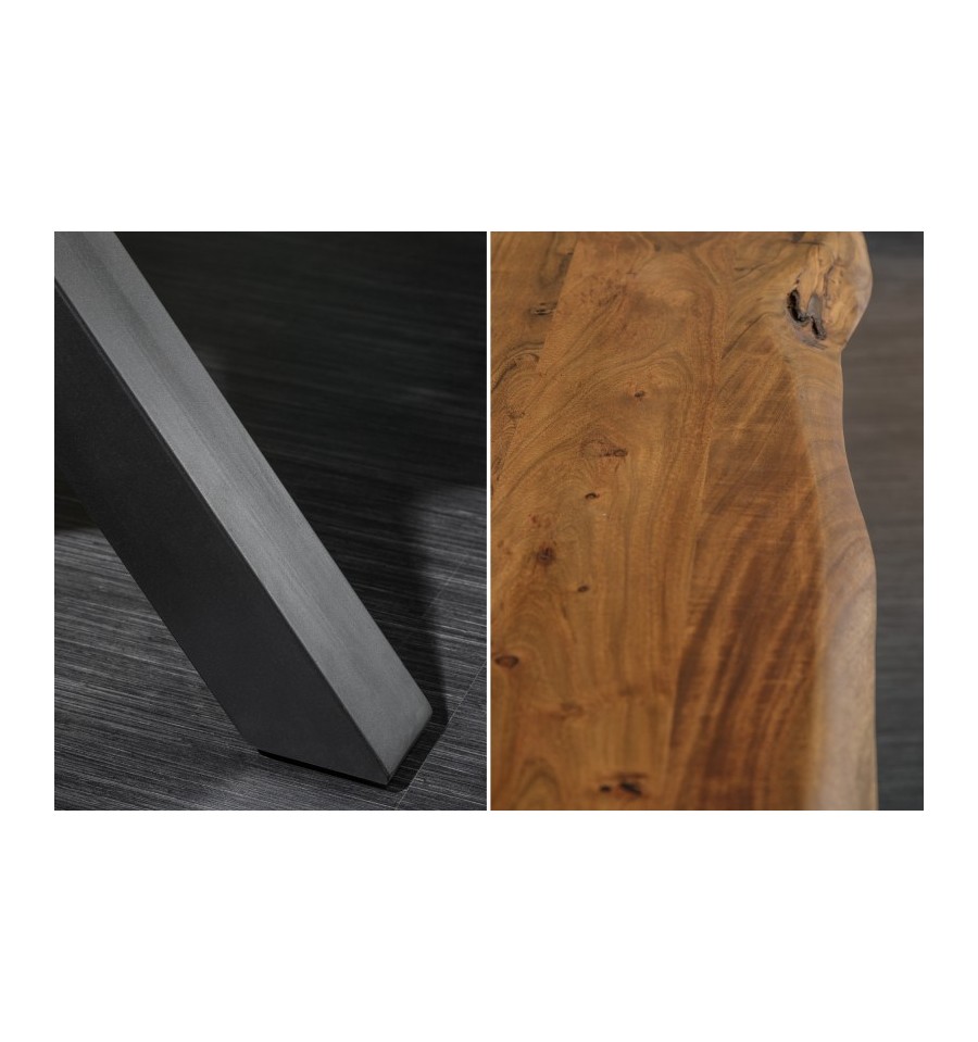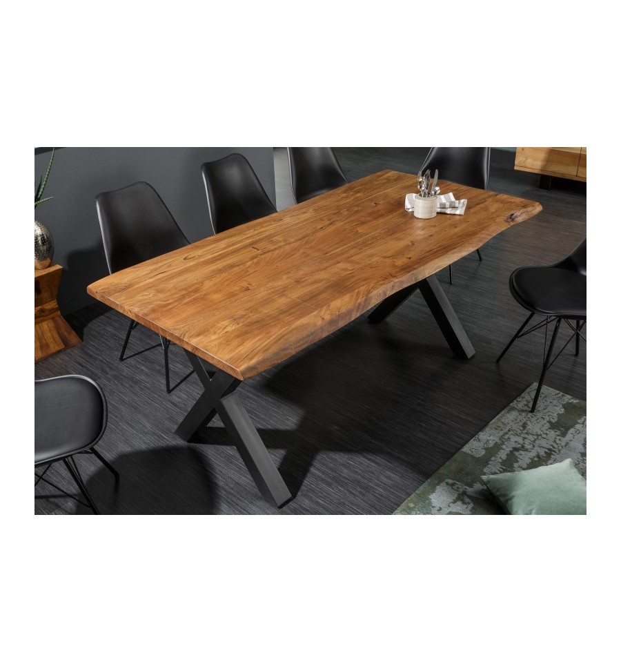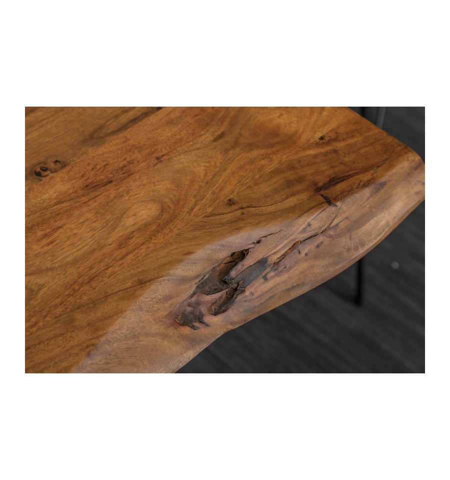 Snyggt och handgjort matbord i massivt akaciaträ. Det handgjorda hantverket gör dessutom att varje bord har ett unikt utseende.