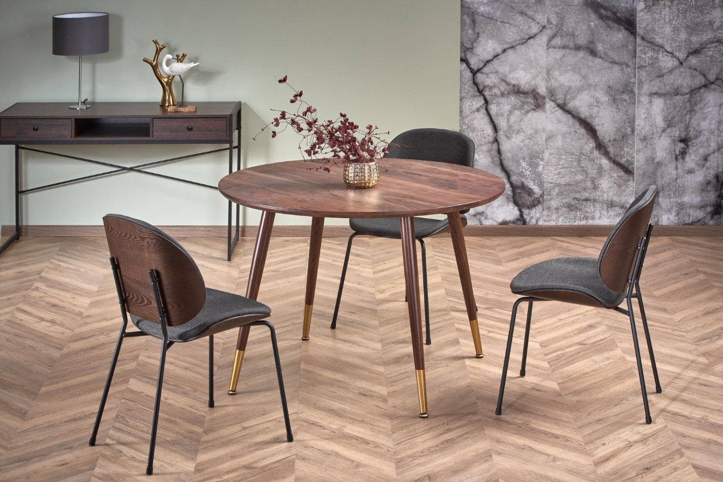 Glimm är det vackra matbordet som förgyller alla utrymmen. Klassisk design i kombination med vackra detaljer i gyllene metall, för en lyxig känsla. Bordsskivan och övre delen av benen är av valnöt vilket ger soffbordet en naturlig och harmoniskt vacker känsla. Utmärkt för hemmet och kontoret.
