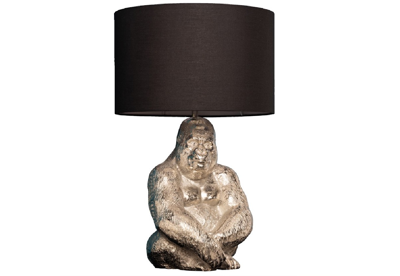 Ge ditt hem en känsla av Kongos djupa skogar med denna fantastiska lampa. Lampbasen är en vacker staty av en sittandes gorilla. En underbart vacker och komplex skulptur som fångar ljuset i sitt uthuggna mönster, samtidigt som lampan sprider ljus till utrymmet.