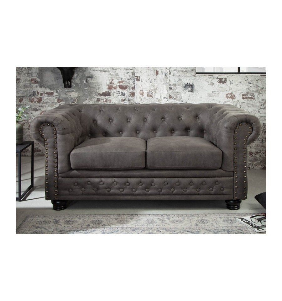 Denna inbjudande tvåsitssoffa i en klassisk Chesterfield-design med ett karakteristiskt antikt utseende. Detta enastående hantverk erbjuder fantastisk komfort och elegans. Soffan har en solid träram som ger optimal stabilitet och klassiska dekorativa guldnitar.