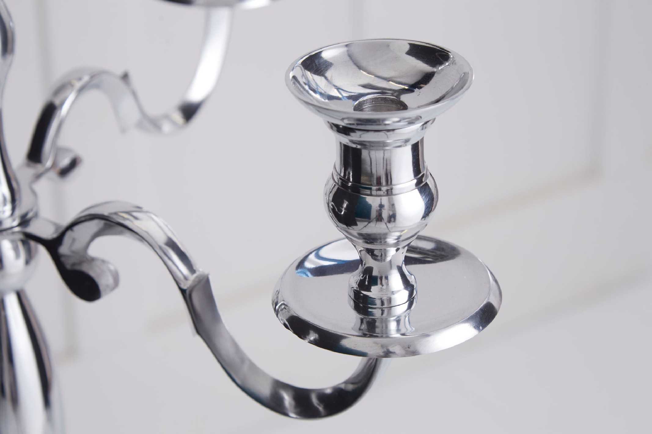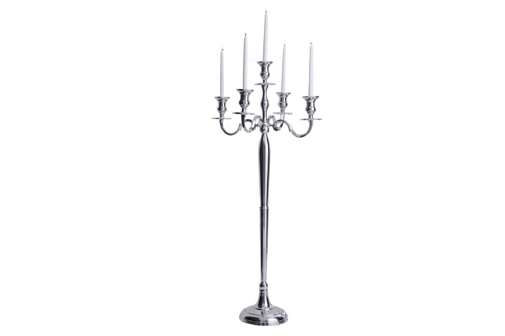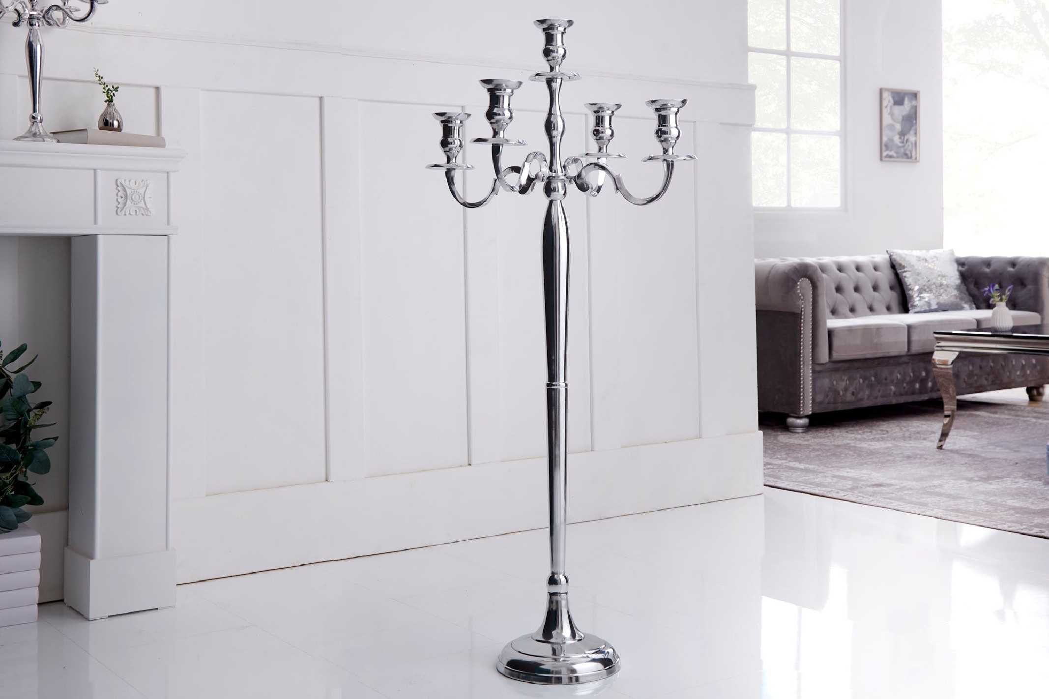 Lyra ljusstake förvandlar ditt hem till en stämningsfull salong med sin majestätiska höjd och fem vackra armar. Den silverfärgade ytan reflekterar ljusets sken och skapar en lyxig, nästan kunglig atmosfär i rummet. Tillverkad i en robust aluminiumlegering kombinerar denna 5-armade ljusstake modern elegans med klassisk barockkänsla. Den slanka siluetten och den polerade, silverfärgade finishen gör den till ett perfekt blickfång på matsalsbord, sideboard eller golv, oavsett om du inreder i modern, klassisk eller lyxig hotellstil. En hög ljusstake i metall som ger rummet karaktär och stil, år efter år. Mått: Bredd x Höjd x Djup 60 x 120 x 60 cm