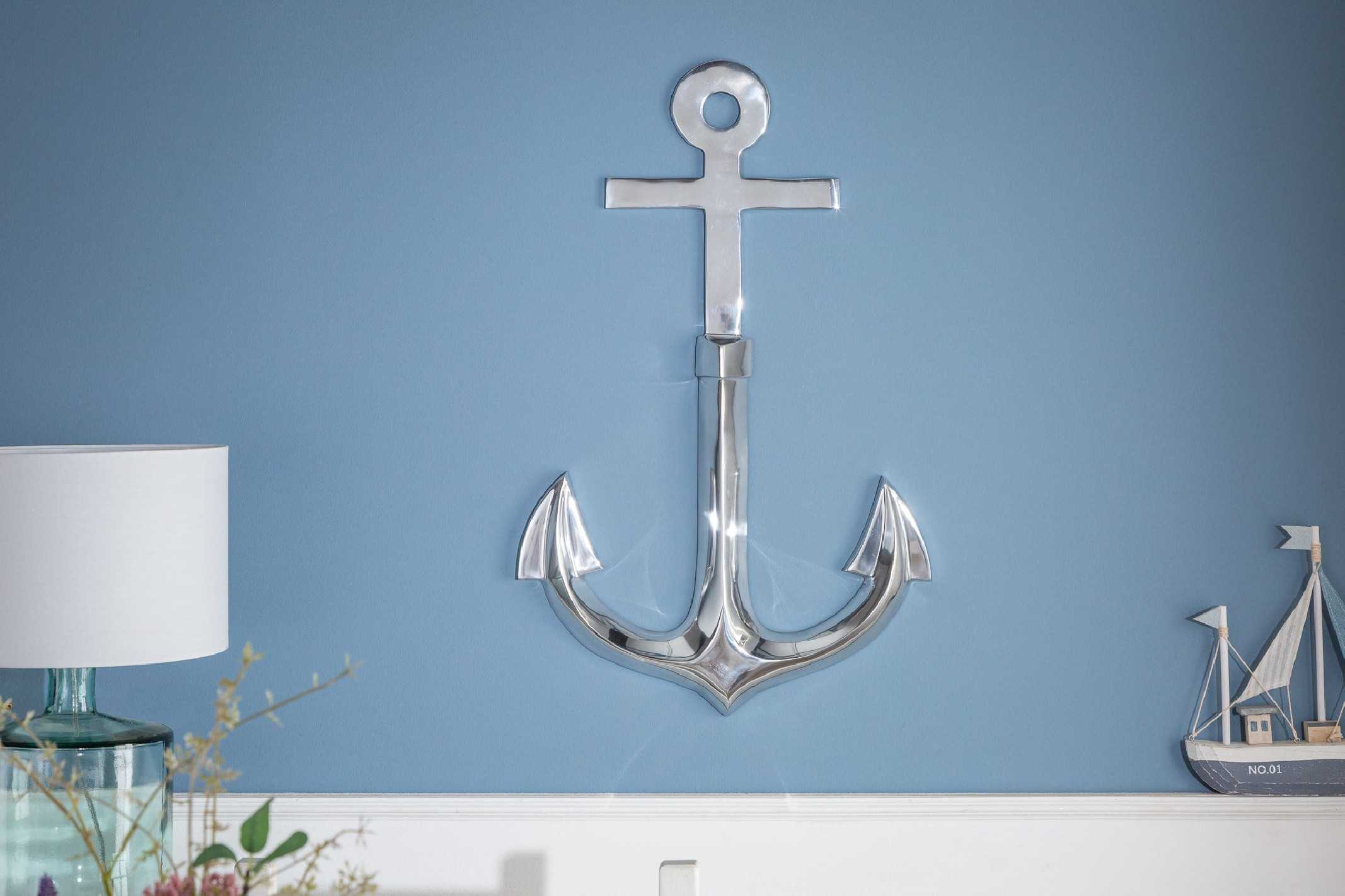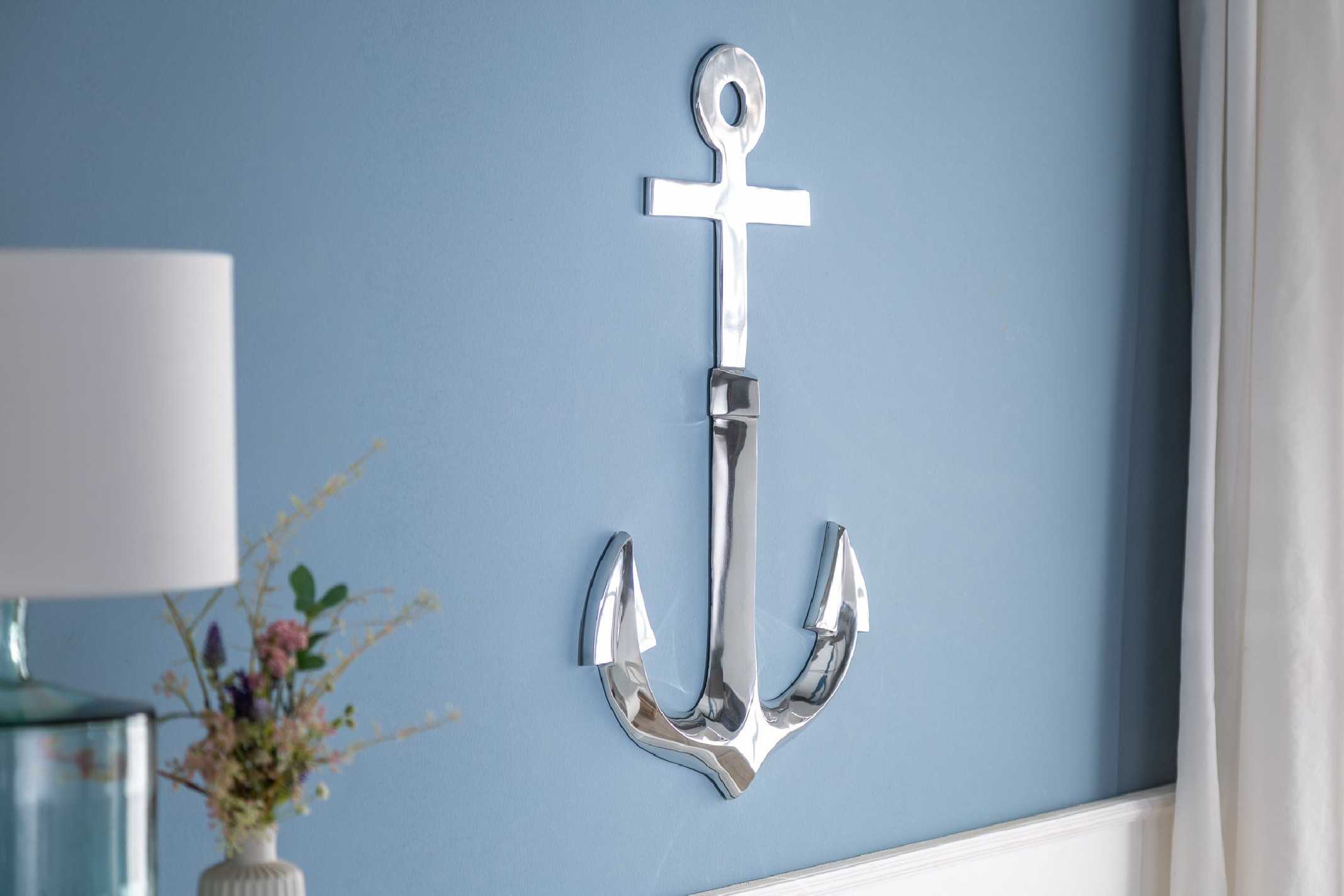 45CM VÄGGDEKORATION, ANKARE I SILVERFÄRGAD ALUMINIUM