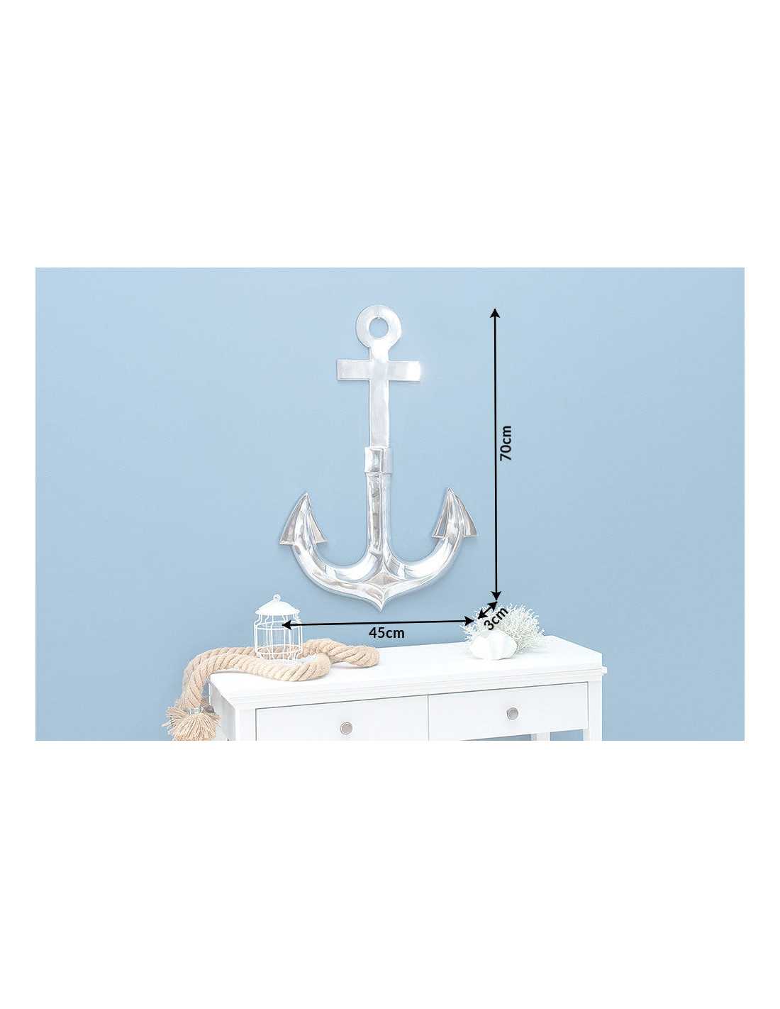 NAOS förvandlar din vägg till en elegant blickpunkt. Den tredimensionella ankardekorationen ger rummet en modern, maritim känsla och skapar omedelbart ett stilfullt fokus. Väggdekorationen är tillverkad i silverfärgad aluminium med en detaljerad 3D-effekt som ger djup och karaktär. Den blanka metallytan fångar ljuset vackert och passar perfekt i allt från vardagsrum och hall till sovrum. Kombinationen av tidlös ankarsymbolik och modern metallfinish gör detta till ett självklart val för dig som söker exklusiv väggkonst och väggdekoration i metall. Mått: Bredd x Höjd x Djup 45 x 70 x 3 cm