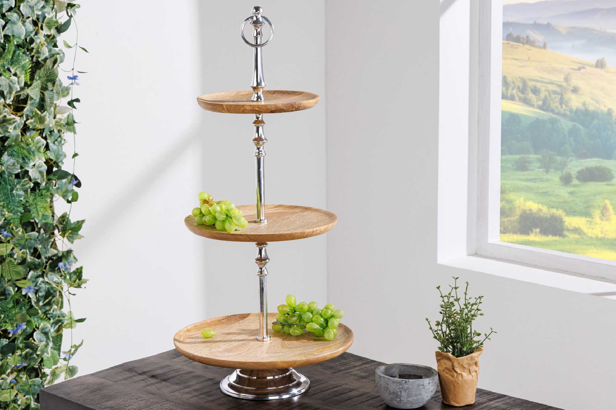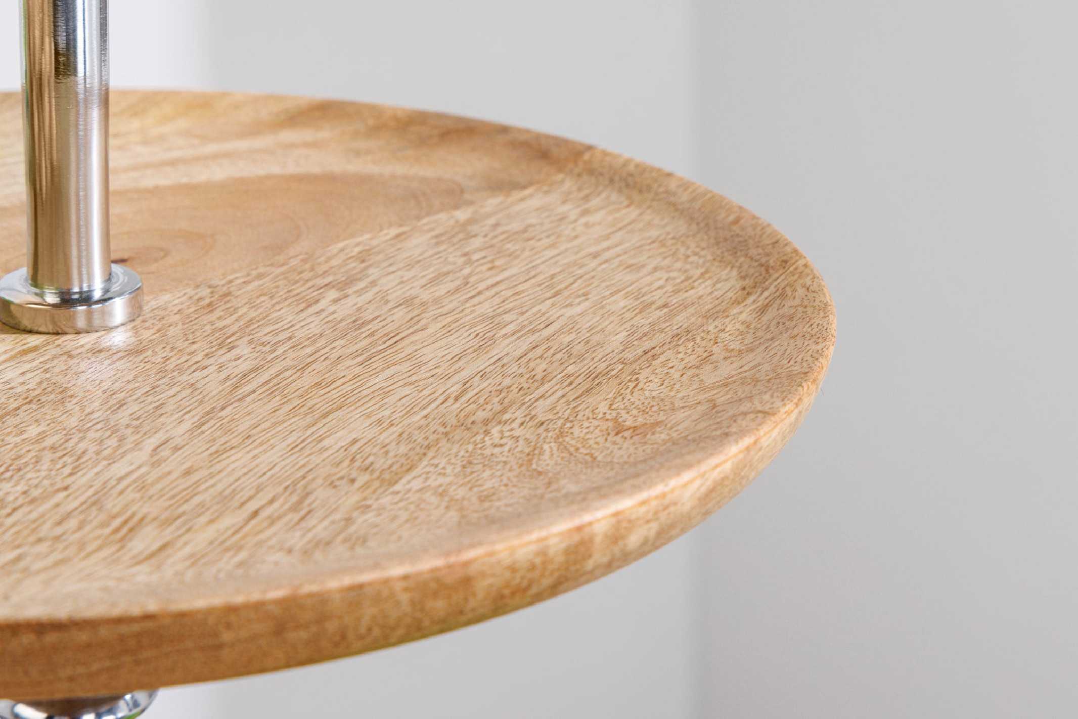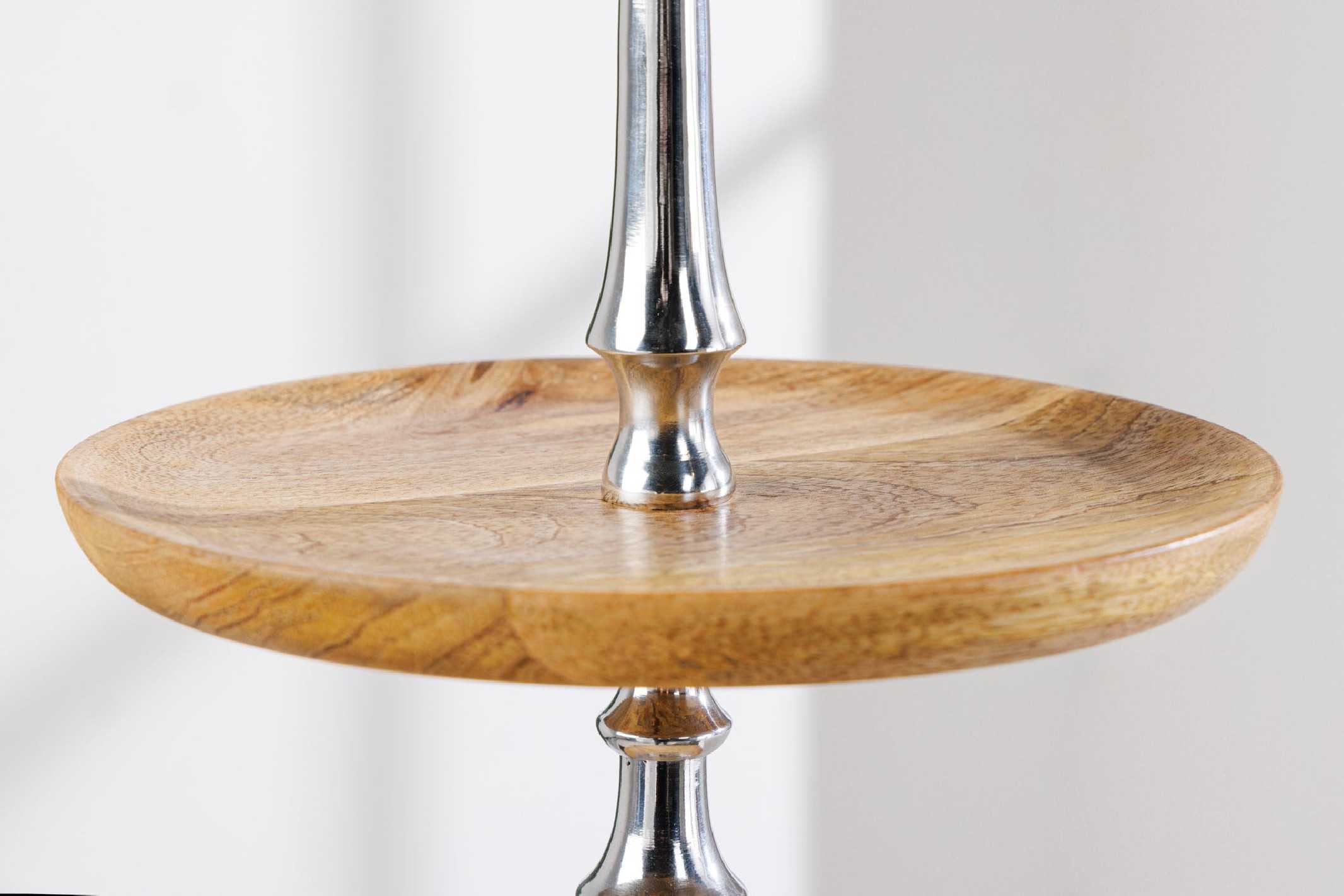 AURIGA är en dekorationsetagère som lyfter din inredning med naturlig elegans och skulptural närvaro. De tre brickorna i mangoträ skapar en varm kontrast mot den svala metallstommen och gör etagèren perfekt för vackra stilleben, ljus eller favoritdekorationer. Varje AURIGA-etagère är handgjord och noggrant lackad för en unik, högblank finish som framhäver mangoträdets naturliga ådring. Den stabila stommen i metall-aluminiumlegering med silverfärgad yta ger en modern känsla och lång hållbarhet. Denna dekorationsetagère passar lika bra på matbordet som på sidobord eller köksbänk och är ett stilfullt val för dig som söker en tidlös etagere i mangoträ. Mått (Bredd x Höjd x Djup): 30 x 68 x 30 cm Benens mått: Ø 16 cm