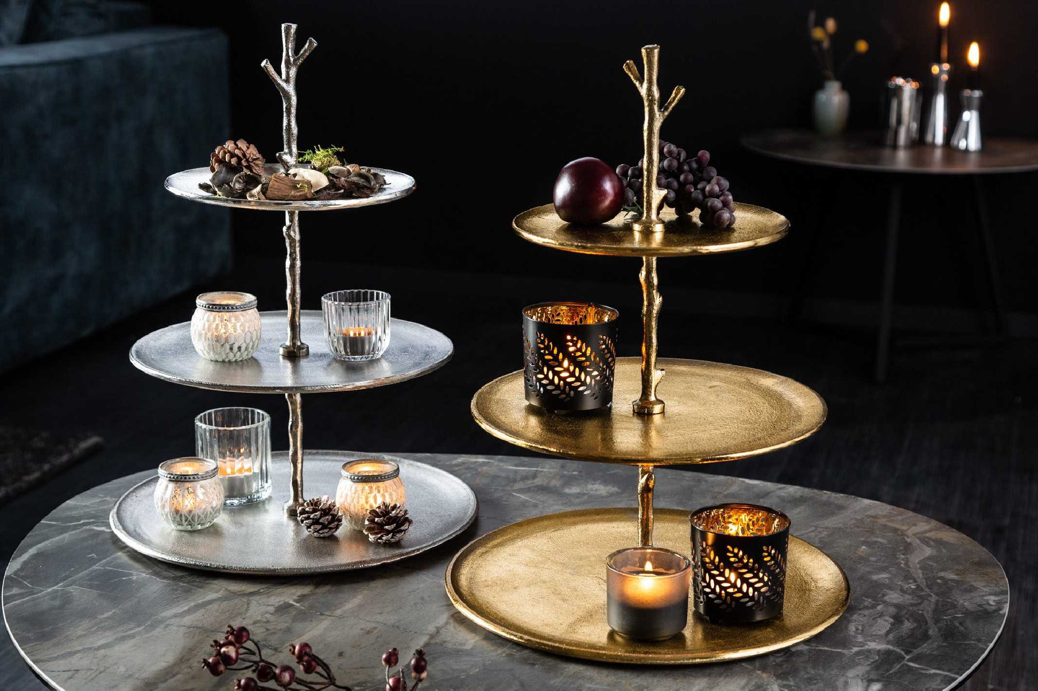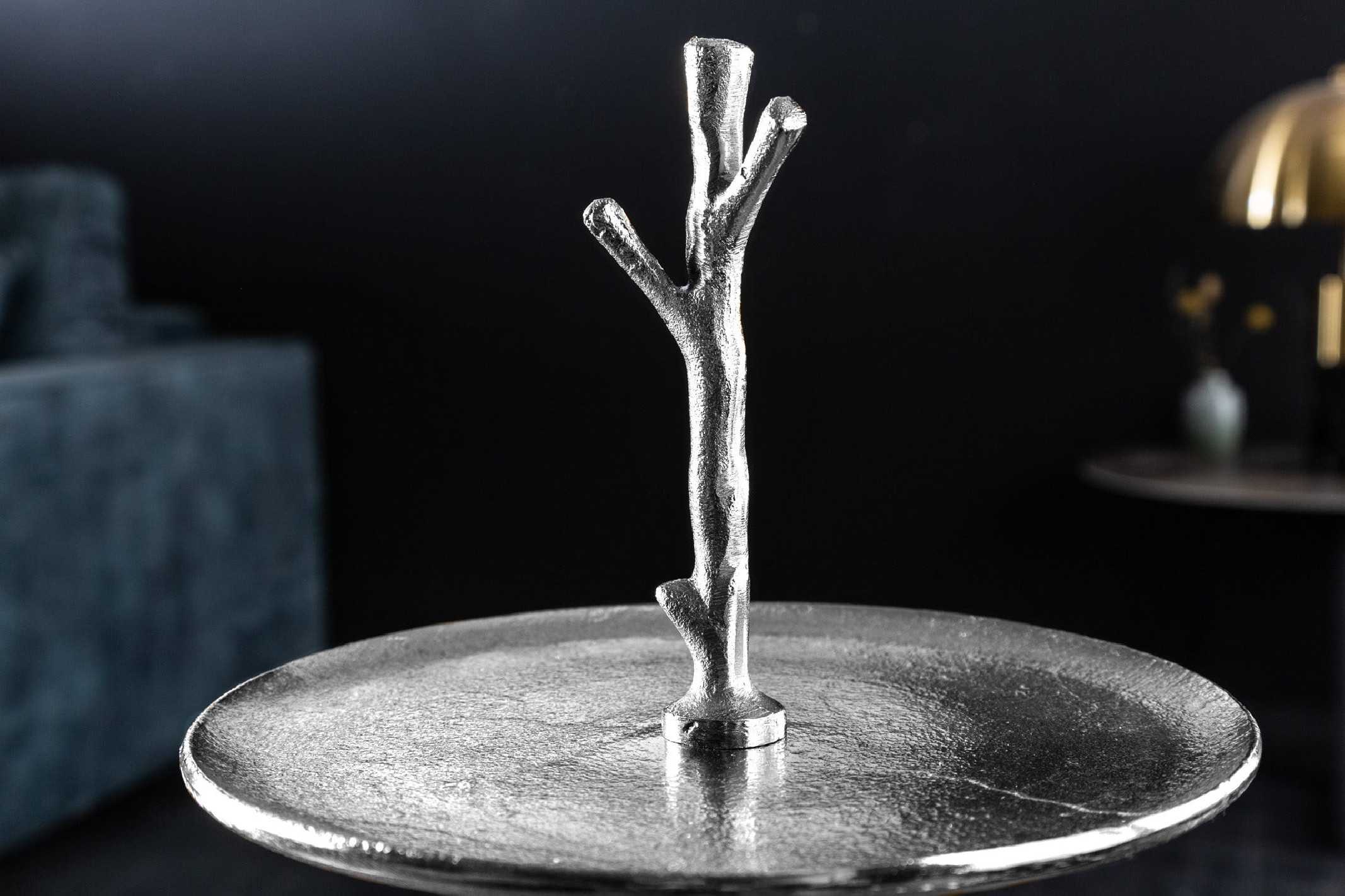 Nebula etagere förvandlar din inredning med sin skulpturala siluett och elegant silverfinish. De tre våningsplanen skapar en stilfull scen för ljuslyktor, växter eller dina finaste inredningsdetaljer och ger rummet en sofistikerad, modern känsla. Tillverkad i metall av aluminiumlegering kombinerar denna etagere både lätthet och stabilitet. Den silverfärgade ytan ger ett exklusivt uttryck som passar lika bra i vardagsrum som på matbord eller sideboard. Med tre generösa brickor får du gott om plats att arrangera dekorationer, servera små tilltugg eller skapa en personlig stilleben. En tidlös dekorationsdetalj som lyfter allt från modern till klassisk inredning och är ett perfekt komplement till annan bordsdekoration och serveringsfat. Mått: Bredd x Höjd x Djup 35 x 48 x 35 cm