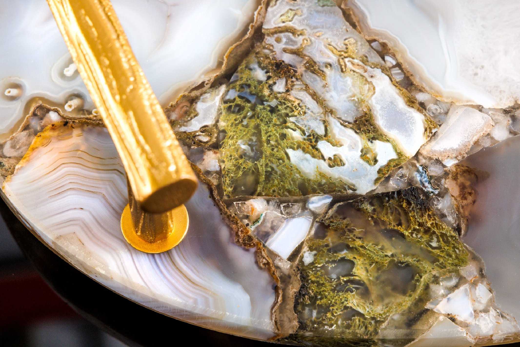 38CM SERVERINGSBRICKA, BLÅ AGAT OCH GULDHANDTAG