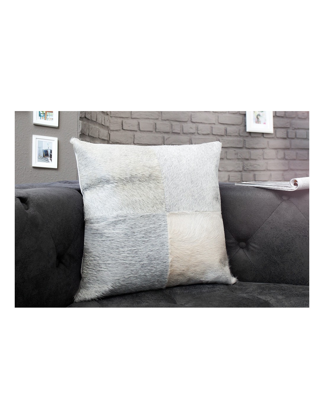 TEXAS är en kudde i tidlös elegans och iögonfallande klädsel som garanterat blir en riktig blickfångare. Framsidan är tillverkad i äkta koskinn i ett genomarbetat hantverk med baksida i bomull. Det naturliga mönstret går bra ihop med andra kuddar. Varje kudde är unik, färg och mönster kan skilja sig sinsemellan.