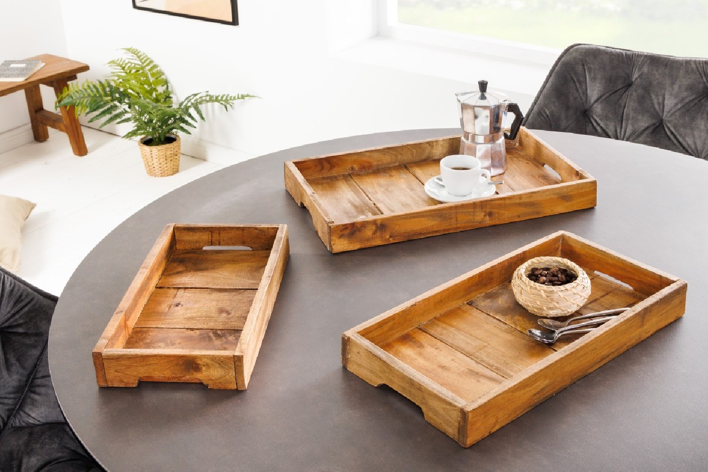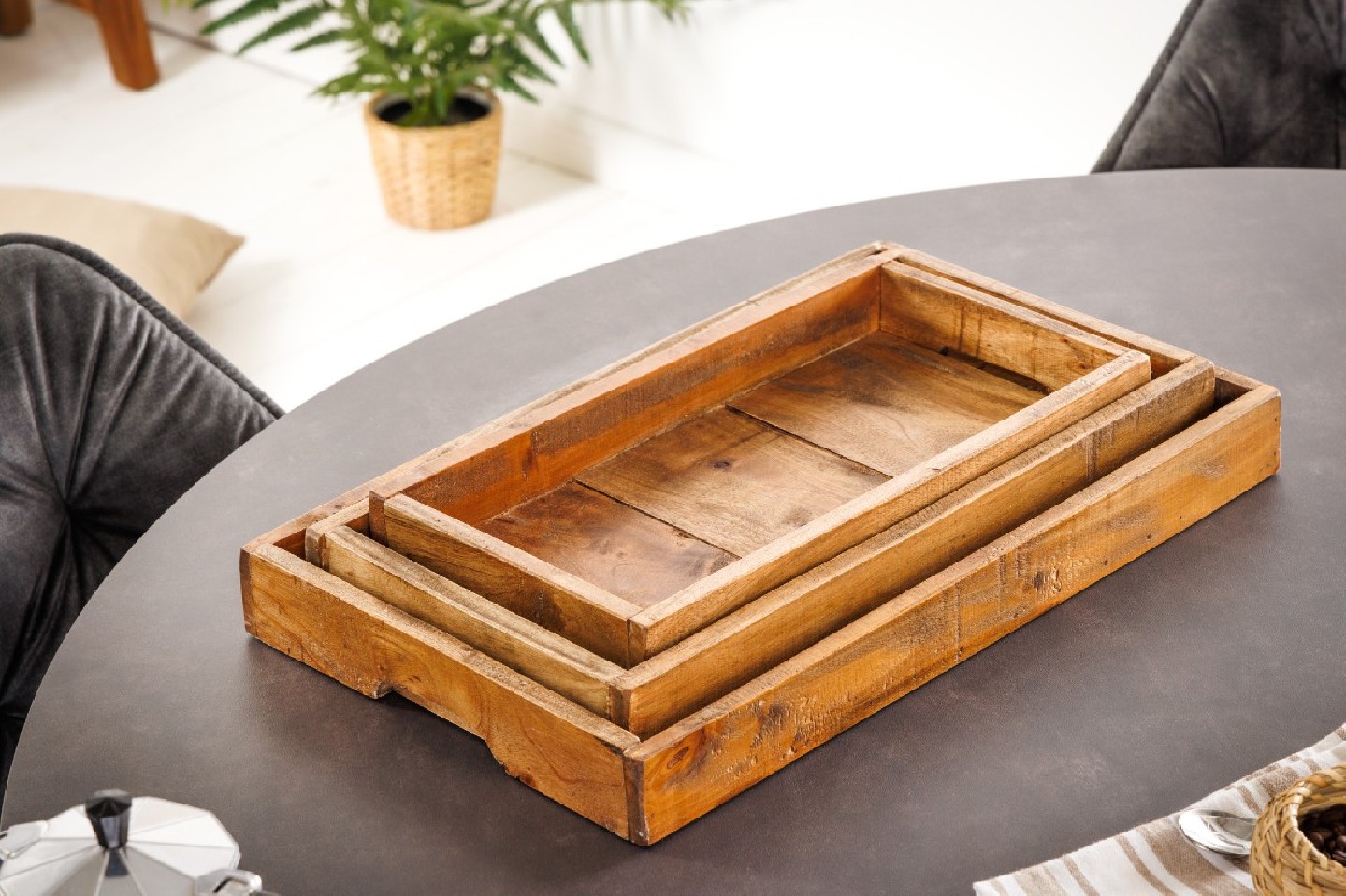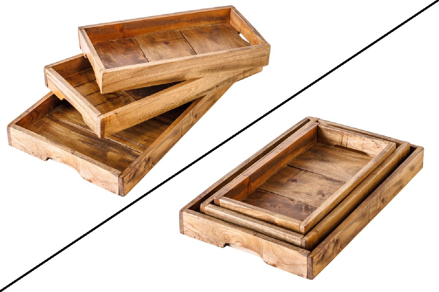 Vackra brickor i set om 3 stycken. De är gjorda av mahogny-trä.