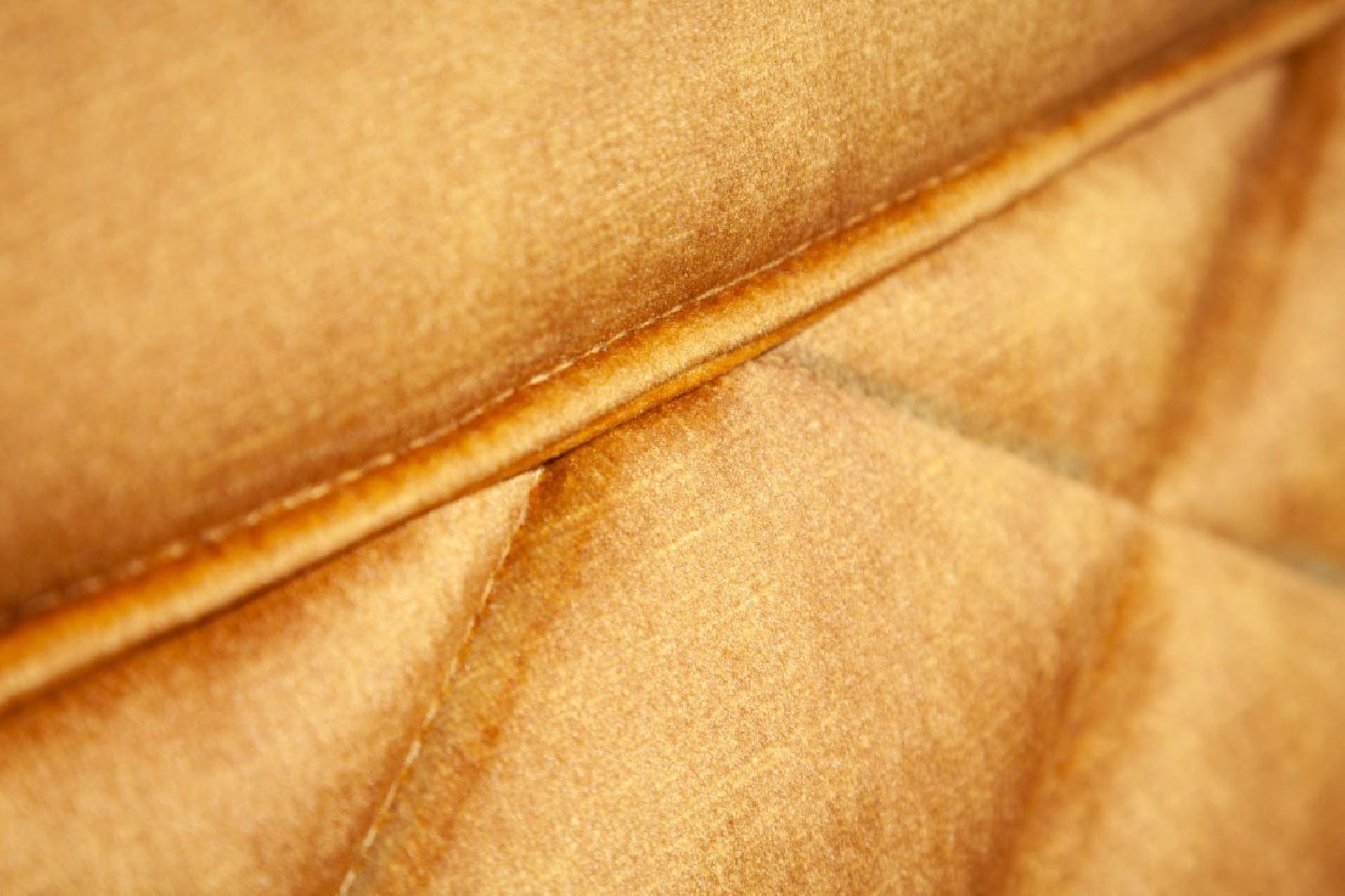 Stilig fåtölj i sammet. Diamantquiltningen på ryggstödet skapar ett retroutseende.