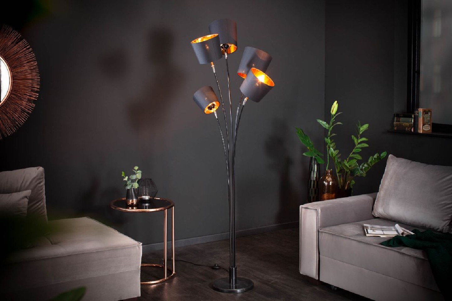 NIVÅ är en snygg och stilren golvlampa som sprider ett behagligt ljus i ditt rum. Golvlampan har fem individuella lampor så du kan anpassa ljuset precis som du vill. Lampskärmarna är tillverkade i linnetyg och är kompatibla med glödlampor i klass A++ till E. Finns i flera utföranden.