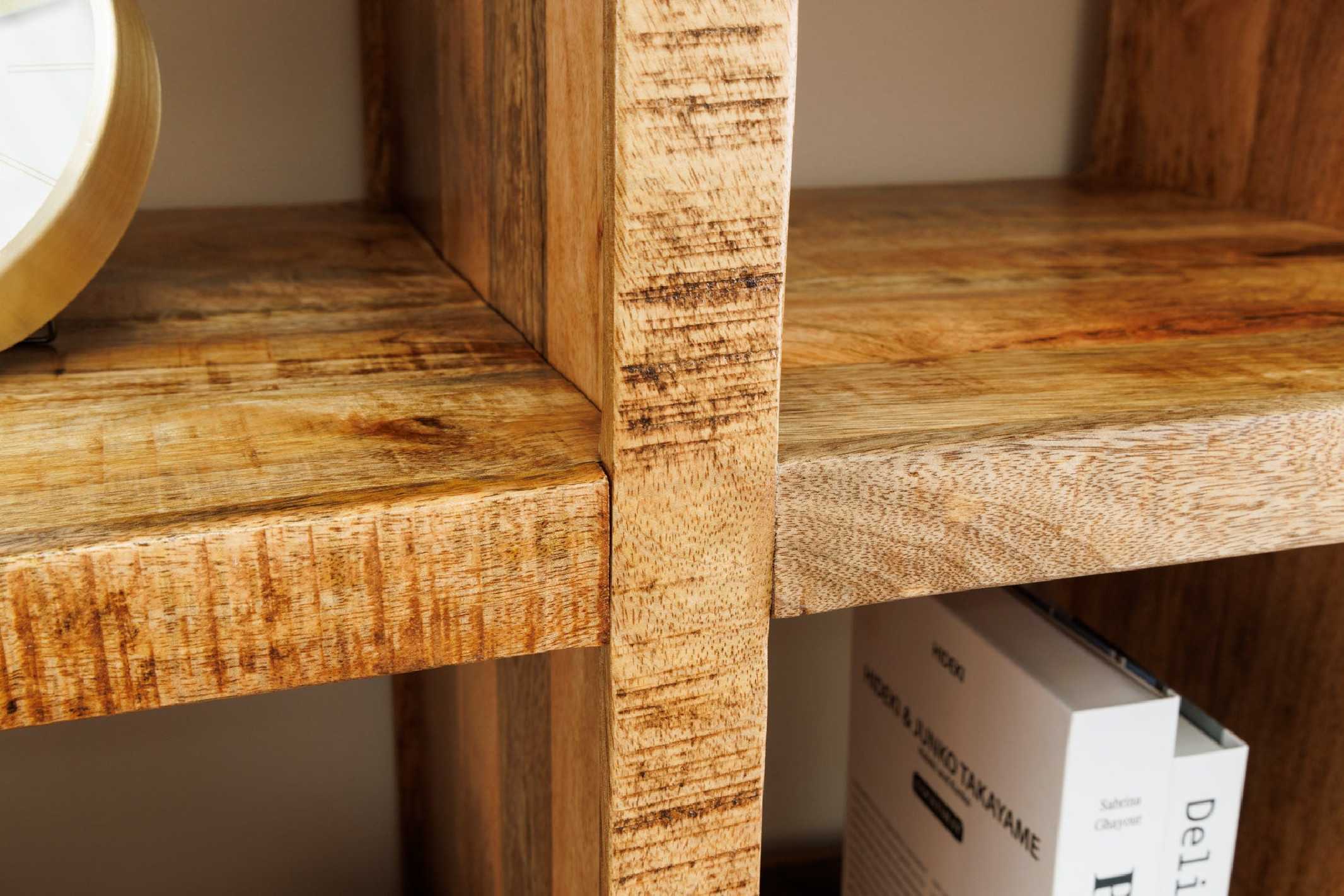 Nebulosa-hyllan lyfter din förvaring till ny nivå med sin skulpturala design och varma träton. Den öppna konstruktionen gör det enkelt att visa upp dina favoritföremål och skapa en luftig, stilren känsla i rummet – perfekt i såväl vardagsrum som hemmakontor. Tillverkad i mangoträ med naturlig finish ger denna hylla en exklusiv, modern industriell känsla som samtidigt känns ombonad. Den robusta konstruktionen med maxbelastning på 64 kg gör den idealisk som bokhylla eller displayhylla, där du kan kombinera böcker, dekorationer och växter. Ytan i naturligt mango trä framhäver träets unika ådring och gör varje hylla unik, samtidigt som den är lätt att kombinera med andra möbler i både ljusa och mörka träslag. Mått (Bredd x Höjd x Djup): Bredd: 156 cm Höjd: 160 cm Djup: 40 cm