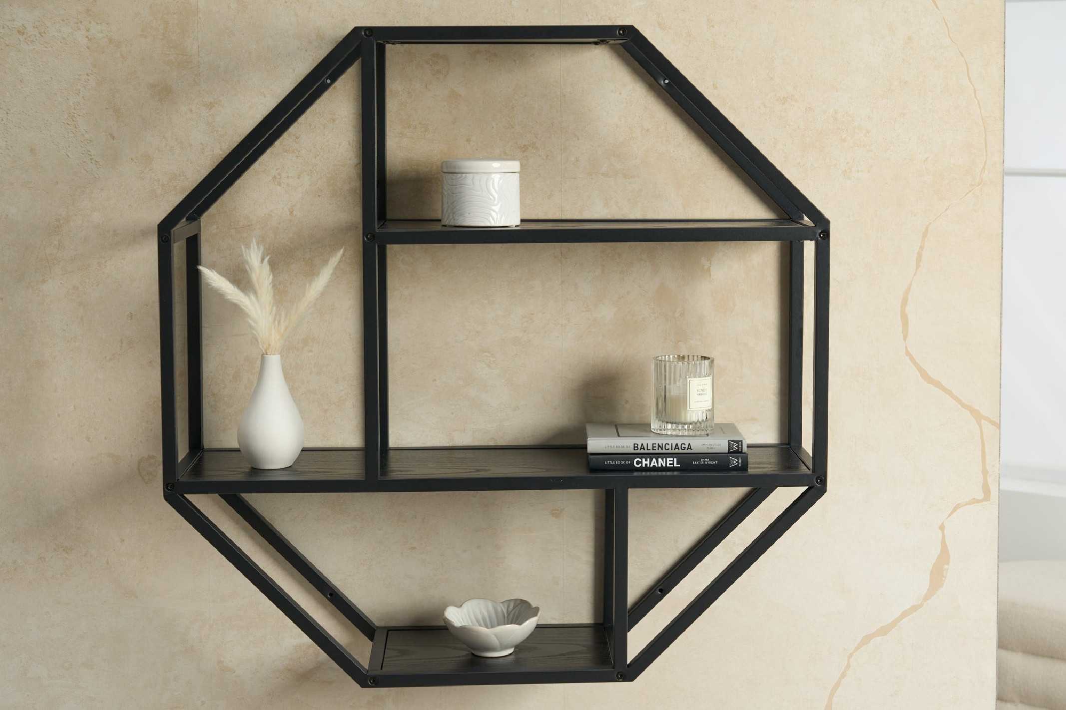 Lyra vägghylla ger en stilren och svävande känsla på väggen, perfekt för att lyfta fram dina favoritdetaljer utan att ta över rummet. Den grafiska formen och den mörka ramen skapar en modern, harmonisk ordning i både vardagsrum, hall och sovrum. Med en yta i ask-look på slitstark MDF och ett pulverlackerat metallstativ i svart blir denna vägghylla både elegant och robust. Den minimalistiska designen gör sig lika bra ensam som i grupp, och fungerar utmärkt som vägghylla ovanför soffa, skrivbord eller sideboard. Lyra är ett praktiskt förvarings- och dekorelement som kombinerar nordisk enkelhet med modern industriell känsla – en perfekt vägghylla för dig som vill ha både form och funktion. Mått: Bredd x Höjd x Djup 77 x 77 x 20 cm