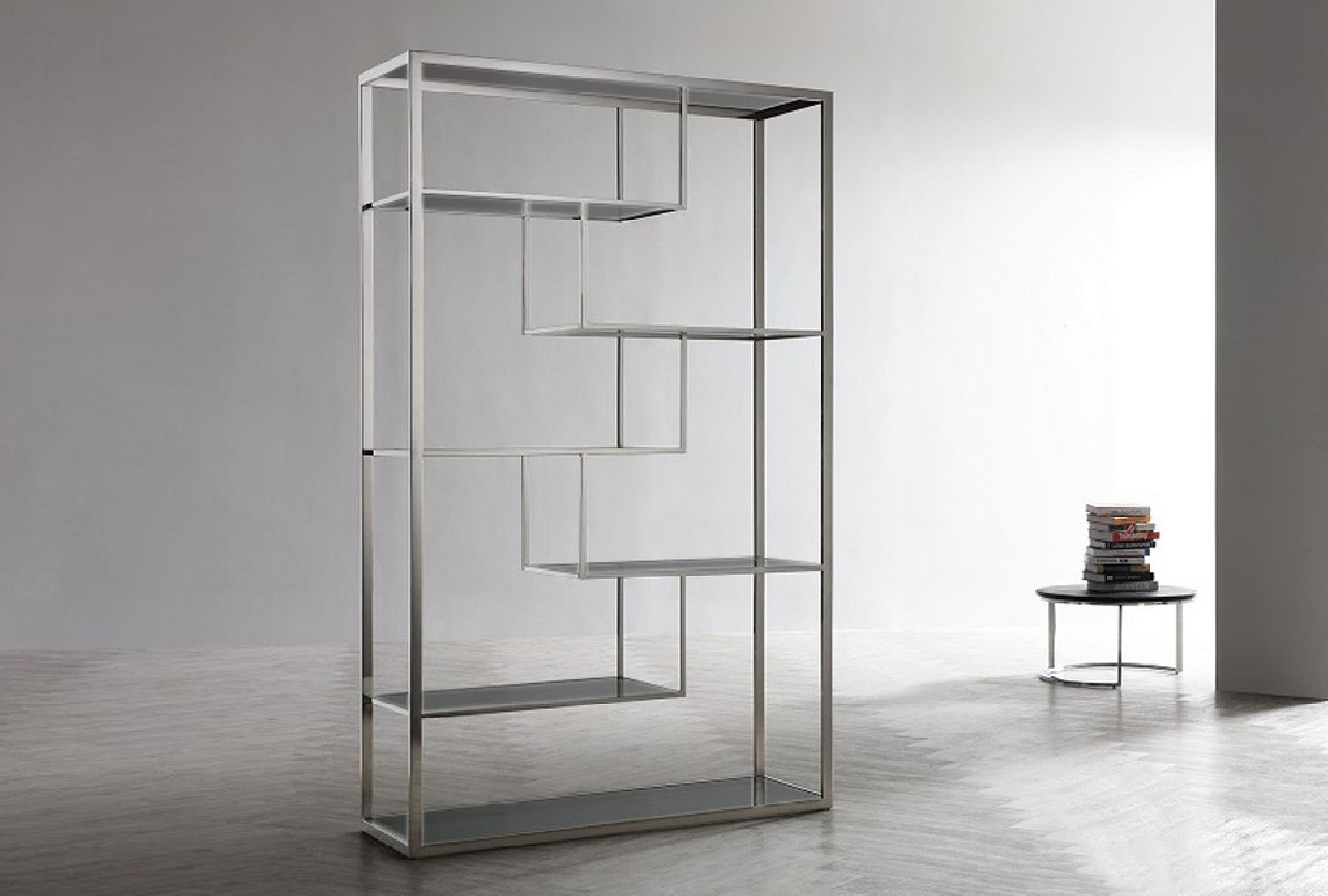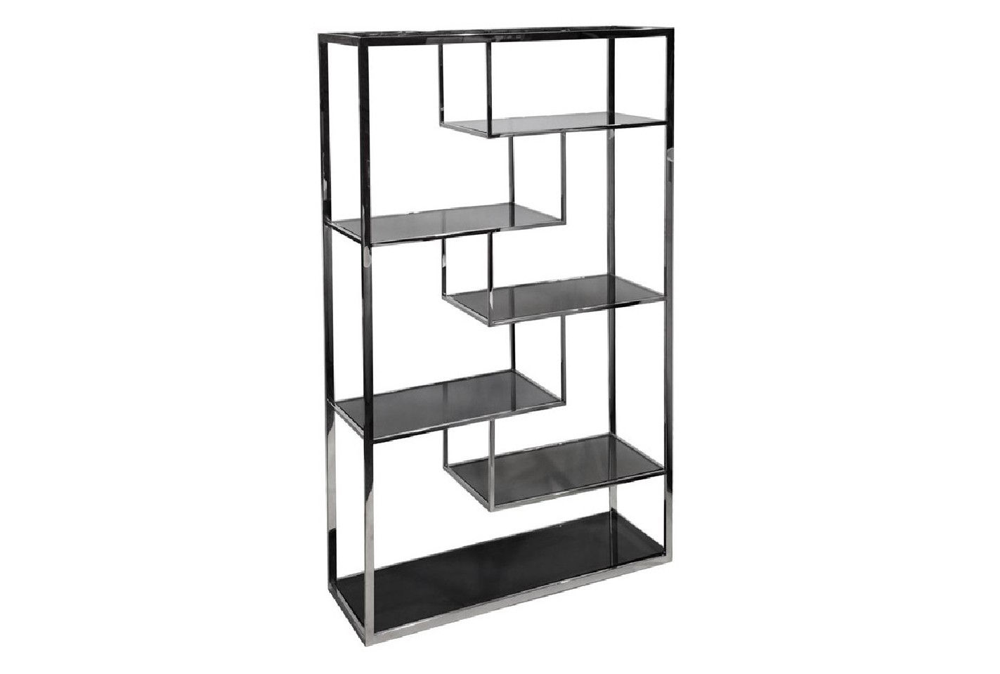 120X200CM HYLLA I ROSTFRITT STÅL/GRÅTT GLAS