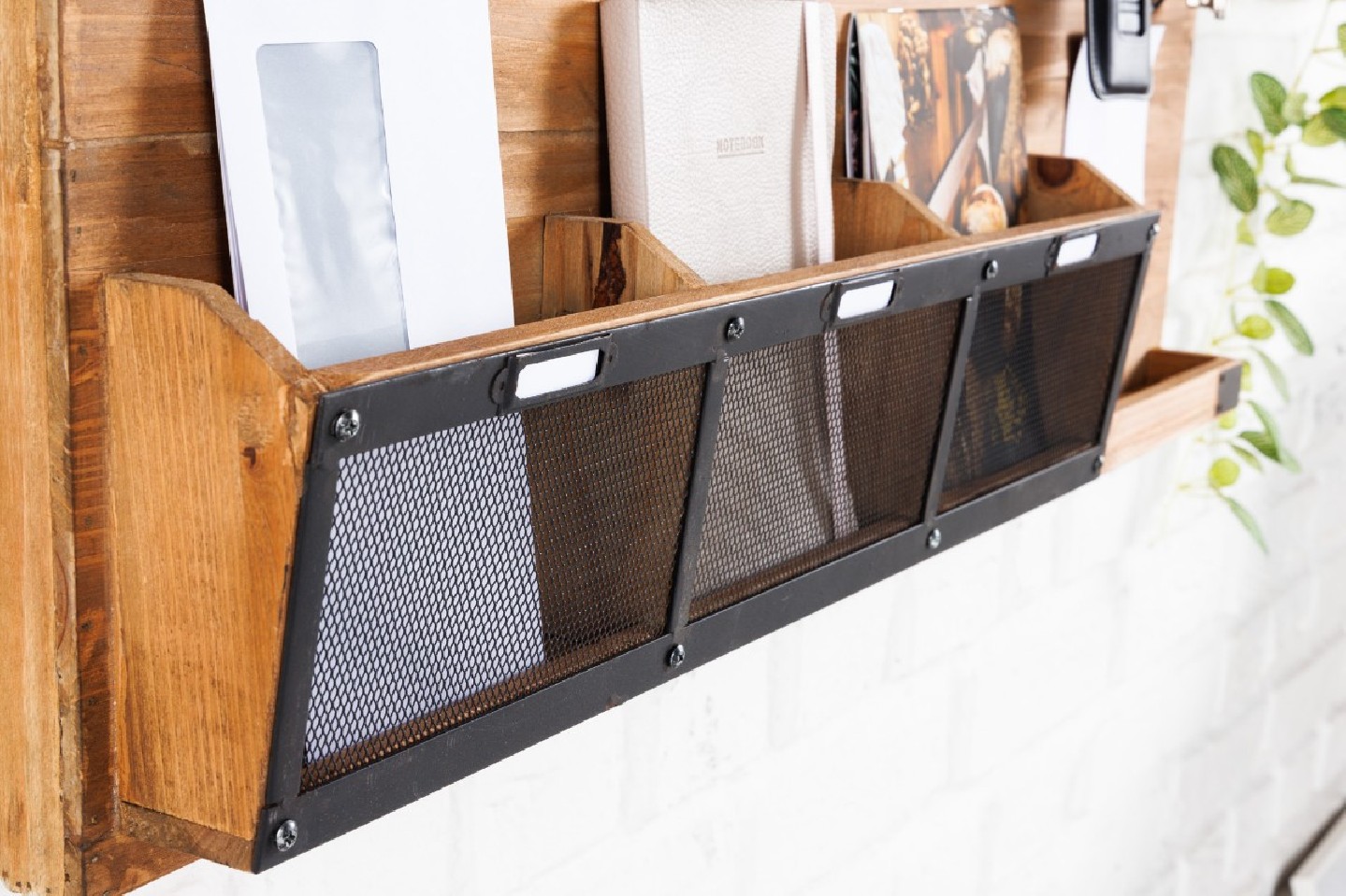Praktisk och funktionell vägghylla med många olika funktioner. Den passar perfekt i hallen.