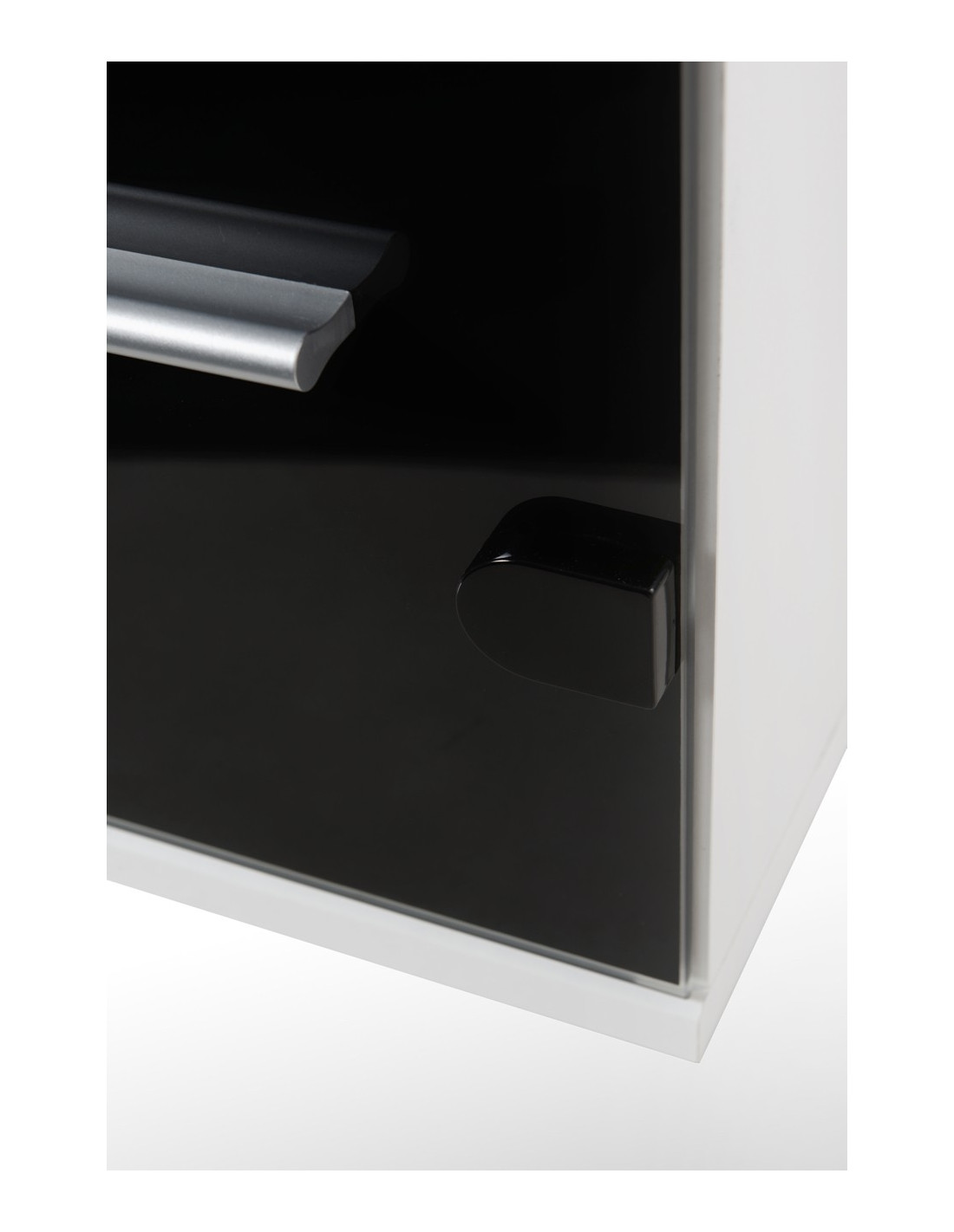 LIAM är en elegant mediamöbel i svart och vitt med blå LED-belysning. Du monterar själv ihop väggenheterna, de levereras med en tydlig manual som gör monteringen snabb och enkel. Den vita kroppen är matt och fronterna är högglansigt svarta. Glasrutor i härdat glas. För TV på upp till 47 tum.