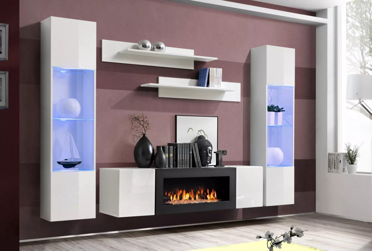 BARONE III - väggmonterad mediamöbelgrupp med LED och öppen spis