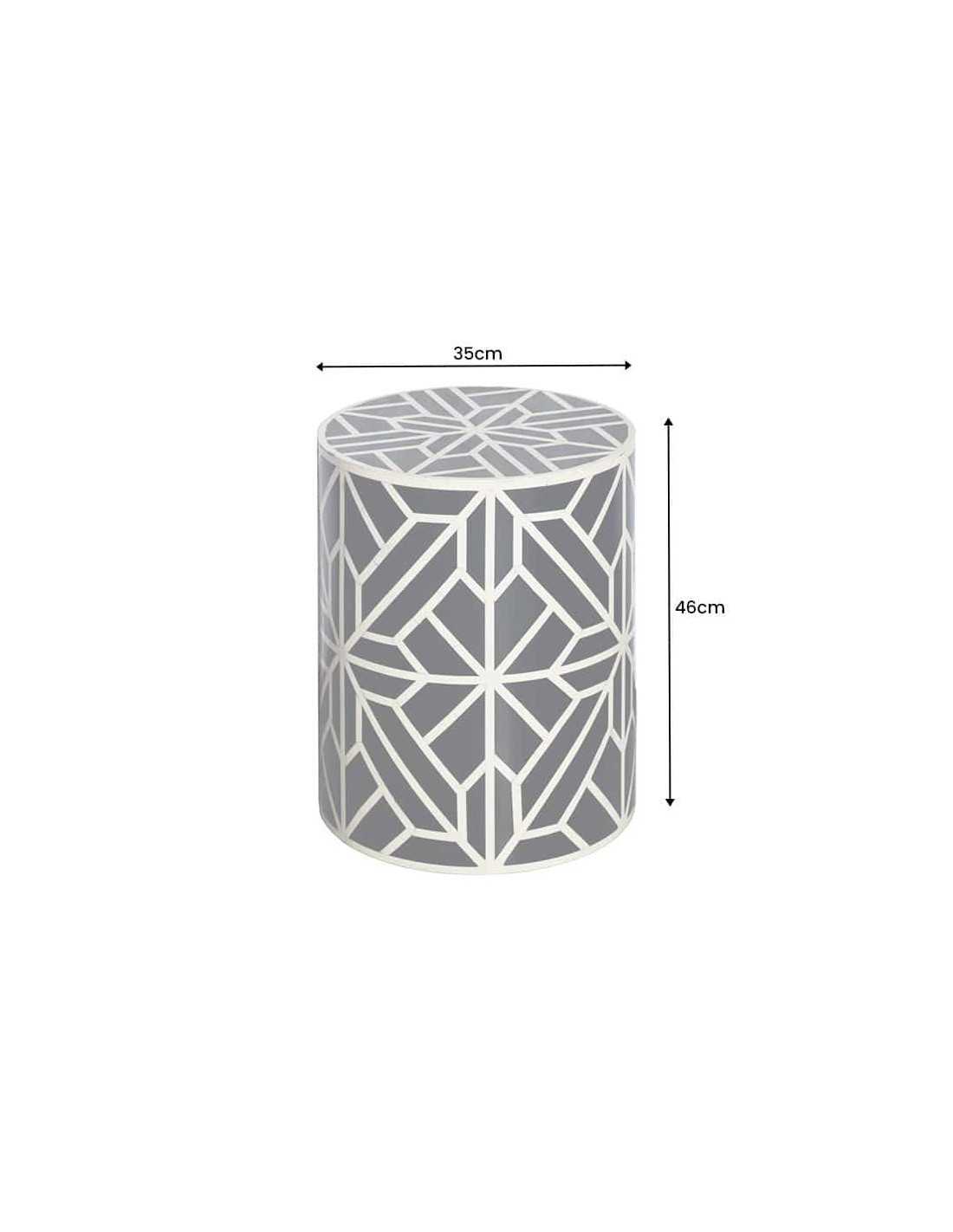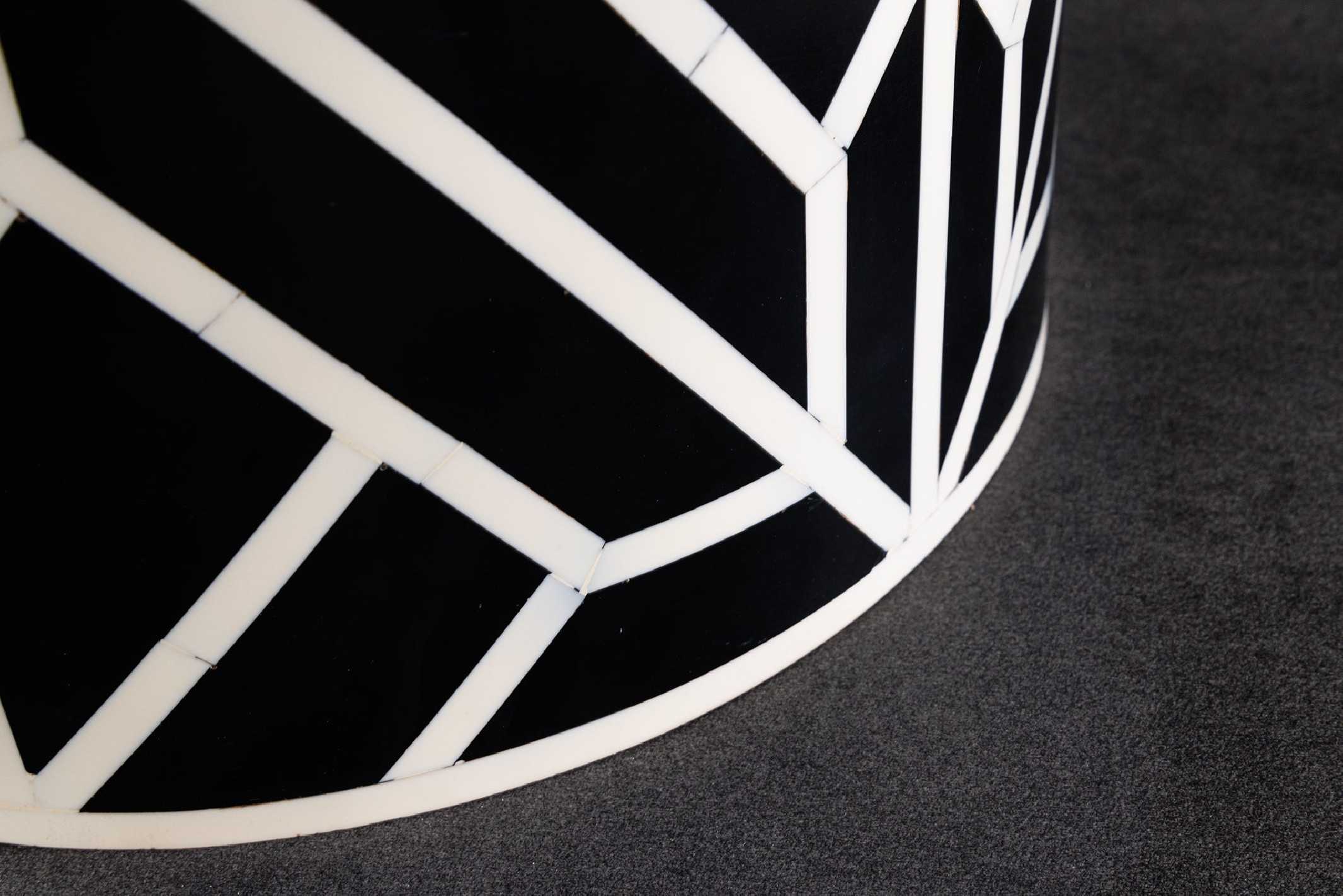 Lyra sidobord förvandlar rummet med sitt grafiska svartvita mönster och konstfulla uttryck. Ett litet, men karaktärsstarkt bord som ger soffhörnan eller läsfåtöljen en exklusiv och personlig känsla. Det handinspirerade bone inlay-mönstret i polyresin skapar ett unikt sidobord som kombinerar naturlig charm med djärn design. Den solida konstruktionen ger en stabil möbel som klarar vardagens användning, samtidigt som det dekorativa mönstret gör bordet till ett självklart blickfång. Perfekt som soffbord i miniformat, avlastningsyta eller sängbord för dig som vill addera ett stilfullt designbord i hemmet. Mått: Bredd 35 x Höjd 46 x Djup 35 cm Max belastning: 40 kg Vikt: 6 kg