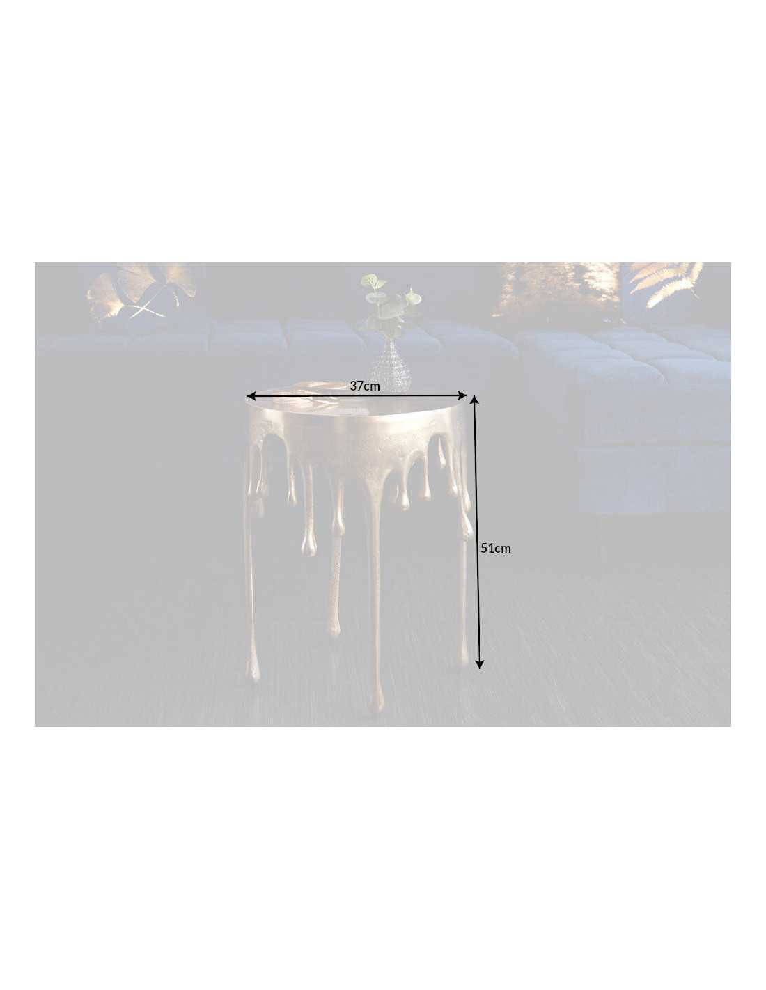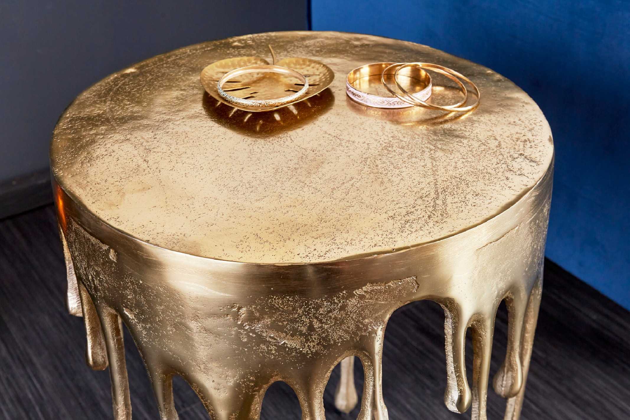 Auriga sidobord i guld ger rummet en lyxig, skimrande accent som genast lyfter helhetskänslan. Det nätta, runda bordet passar perfekt bredvid soffa eller fåtölj och blir en stilren plats för både dekorationer och kaffekoppen. Detta moderna sidobord är tillverkat i en tålig metall- och aluminiumlegering med en elegant gyllene finish som reflekterar ljuset vackert. Den skulpturala formen ger ett exklusivt intryck samtidigt som bordet är lätt att flytta runt i hemmet. Perfekt som soffbord i mindre utrymmen, som avlastningsbord i hallen eller som sängbord i ett lyxigt sovrum – ett guldfärgat sidobord som kombinerar design och funktion på bästa sätt. Mått: Bredd 37 cm x Höjd 51 cm x Djup 37 cm