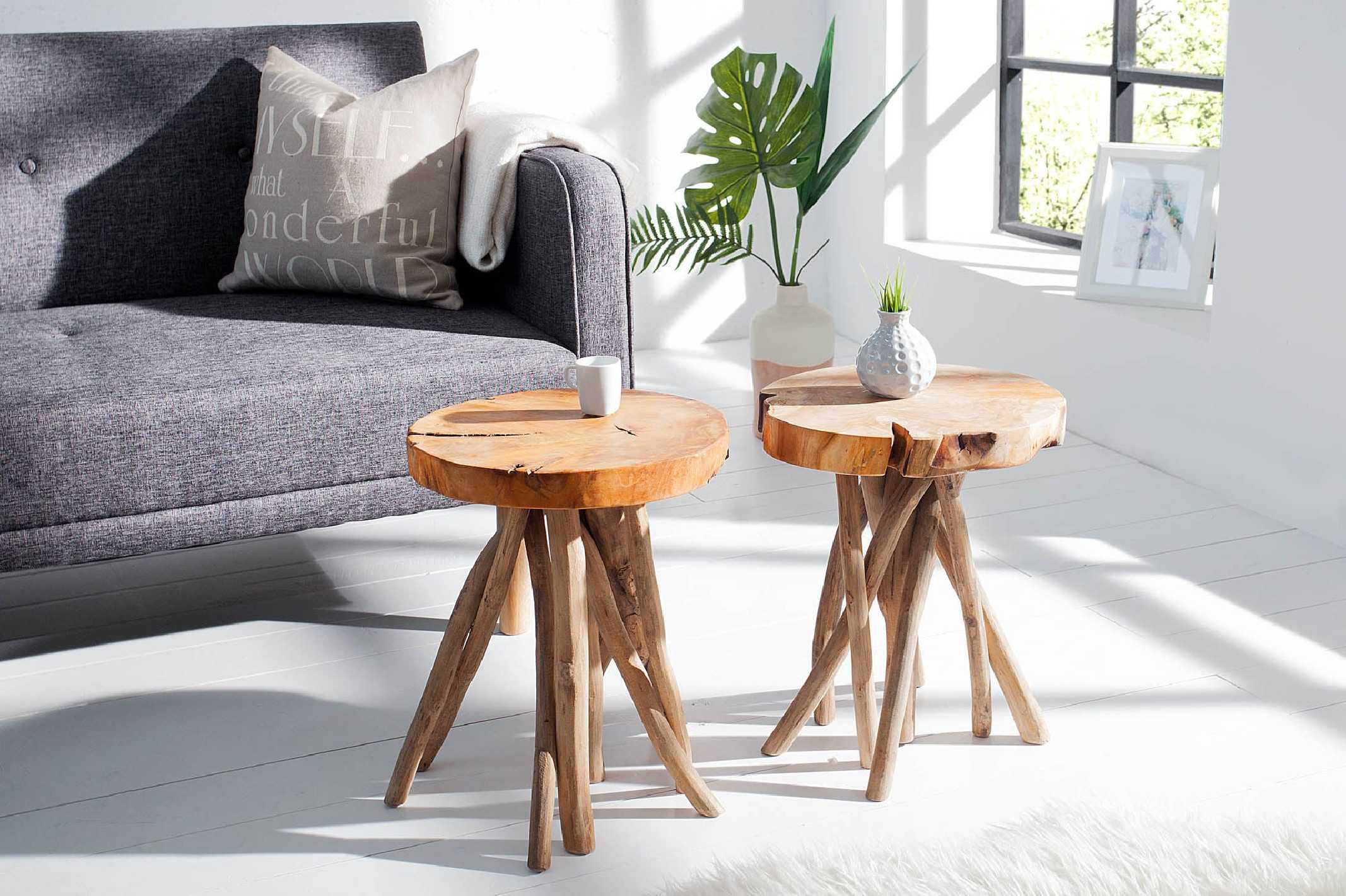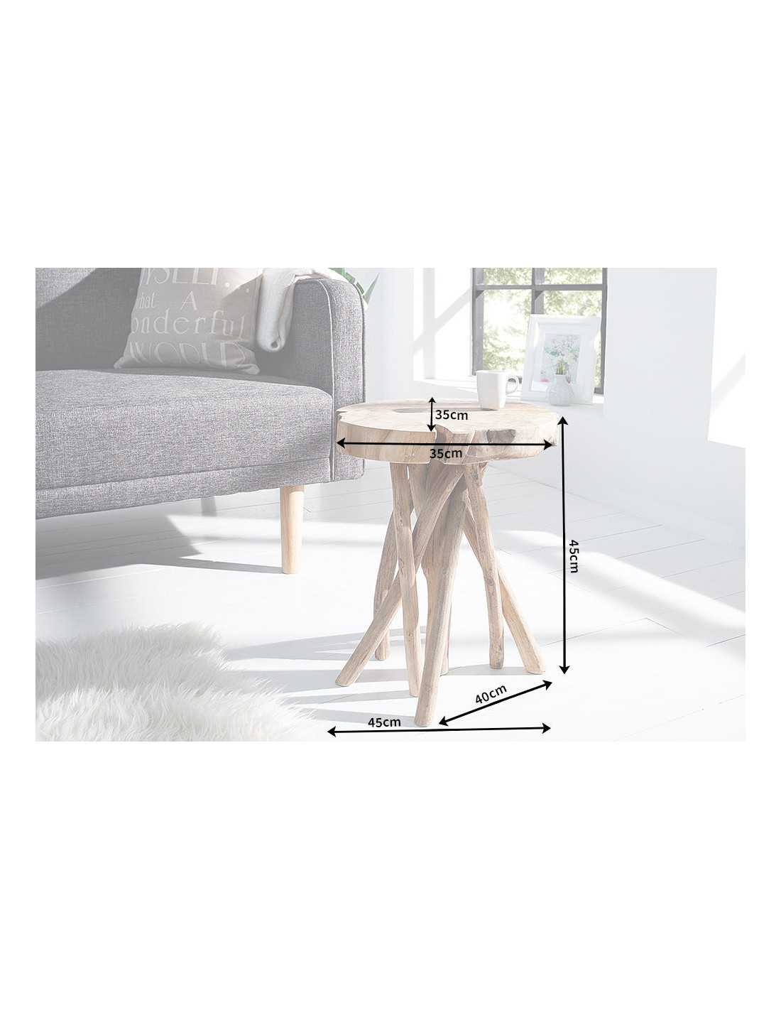 ASTRA sidobord i massiv teak blir ett naturligt blickfång som genast lyfter din inredning. De organiska formerna och den varma trätonen skapar en harmonisk känsla i både modern och rustik miljö. Perfekt som soffbord, sidobord eller stilsäker piedestal för din favoritväxt. Bordet är tillverkat av massiv teakträ av hög kvalitet, vilket ger en robust och hållbar möbel med en maxbelastning på ca 85 kg. Den naturliga ytbehandlingen framhäver träets ådring och färgskiftningar, vilket gör varje sidobord unikt. ASTRA passar utmärkt som litet soffbord, sängbord eller avlastningsbord och är ett idealiskt val för dig som söker ett exklusivt teakbord med tidlös design. Mått: Bredd x Höjd x Djup 45 x 45 x 40 cm