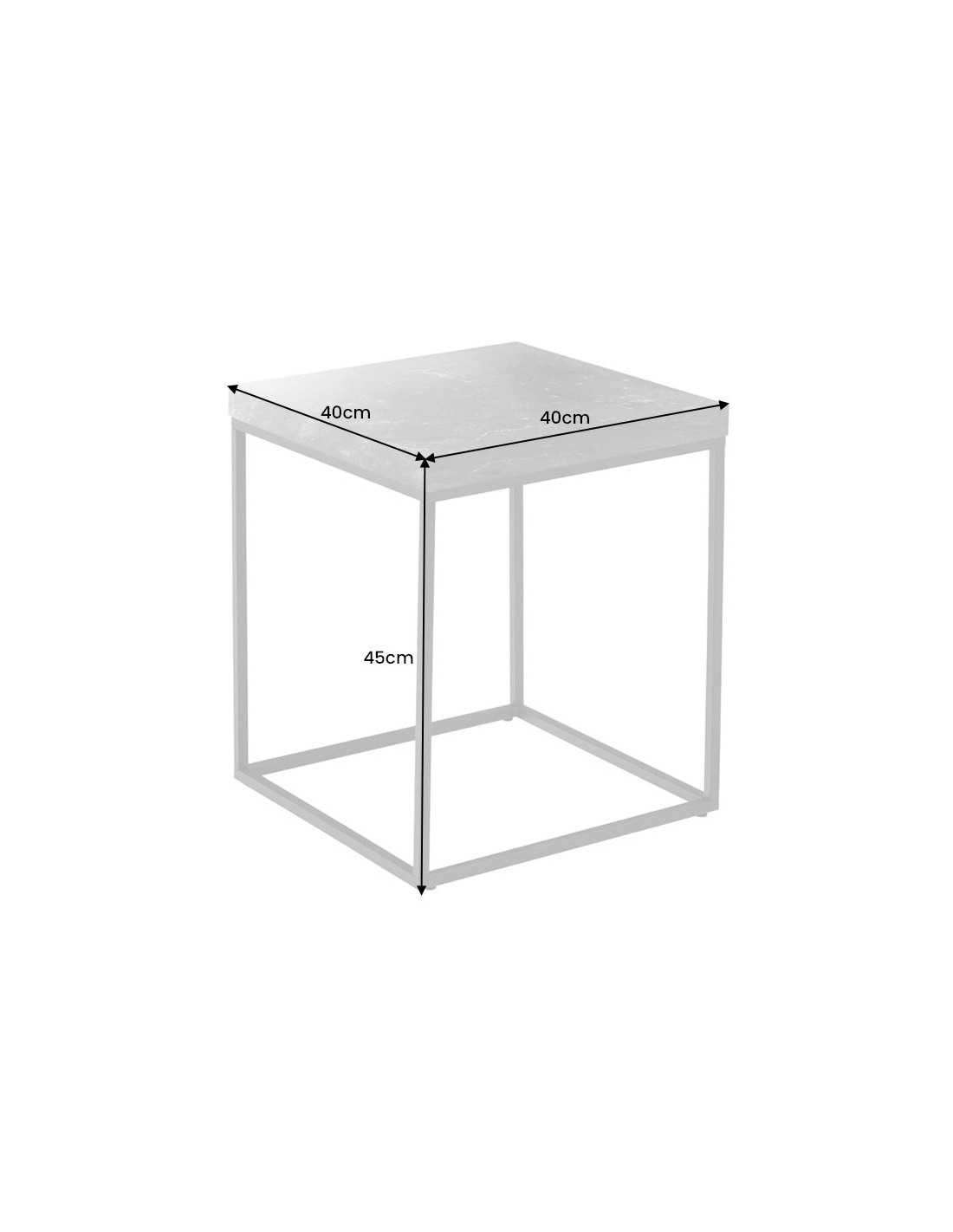 Lyra sidobord för in en känsla av modern elegans i rummet med sin vita marmoreffekt och nätta form. Det kompakta bordet blir ett stilfullt blickfång bredvid soffan, fåtöljen eller sängen och lyfter enkelt hela inredningen. Bordsskivan i MDF med realistisk vit marmoreffekt vilar på ett pulverlackerat svart metallunderrede som ger både stabilitet och en luftig, arkitektonisk känsla. Med sin lättplacerade storlek är detta soffbord/sidobord perfekt i vardagsrum, sovrum eller hall och klarar en maxbelastning på 10 kg. Den tåliga ytan är enkel att torka av, vilket gör bordet praktiskt i vardagen utan att tumma på den exklusiva looken. Mått: Bredd x Höjd x Djup: 40 x 45 x 40 cm Tjocklek bordsskiva: 33 mm Mått ben: 1,3 x 1,3 cm Avstånd golv till bordskant: 40,5 cm Max. belastning: 10 kg Vikt: 3,2 kg