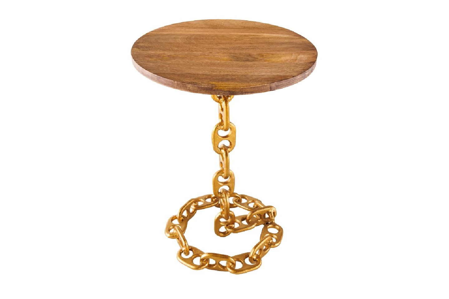 Vackert sidobord med en bordsskiva i mangoträ och repformad design. Varje bord är handgjort vilket gör varje soffbord unikt.