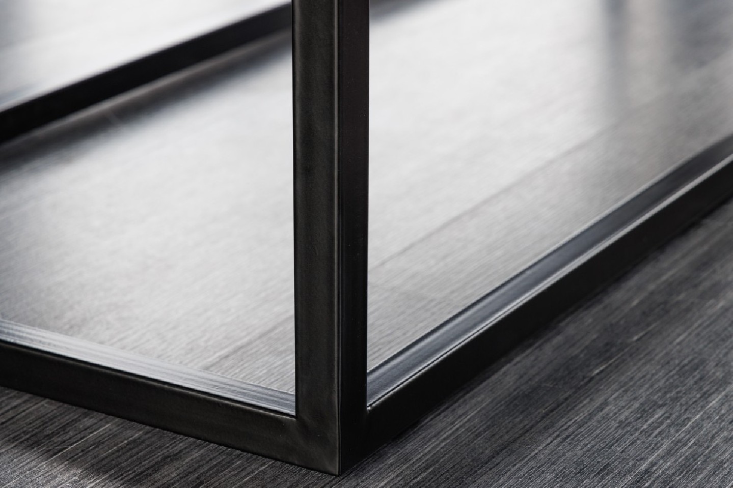 Snygg och stilren bänk i taupe sammet. Bänken med sina dekorativa sömmar och den svarta ramen bildar en harmonisk kontrast.