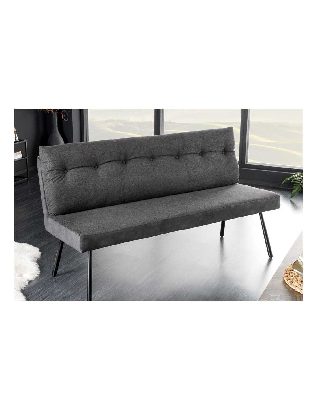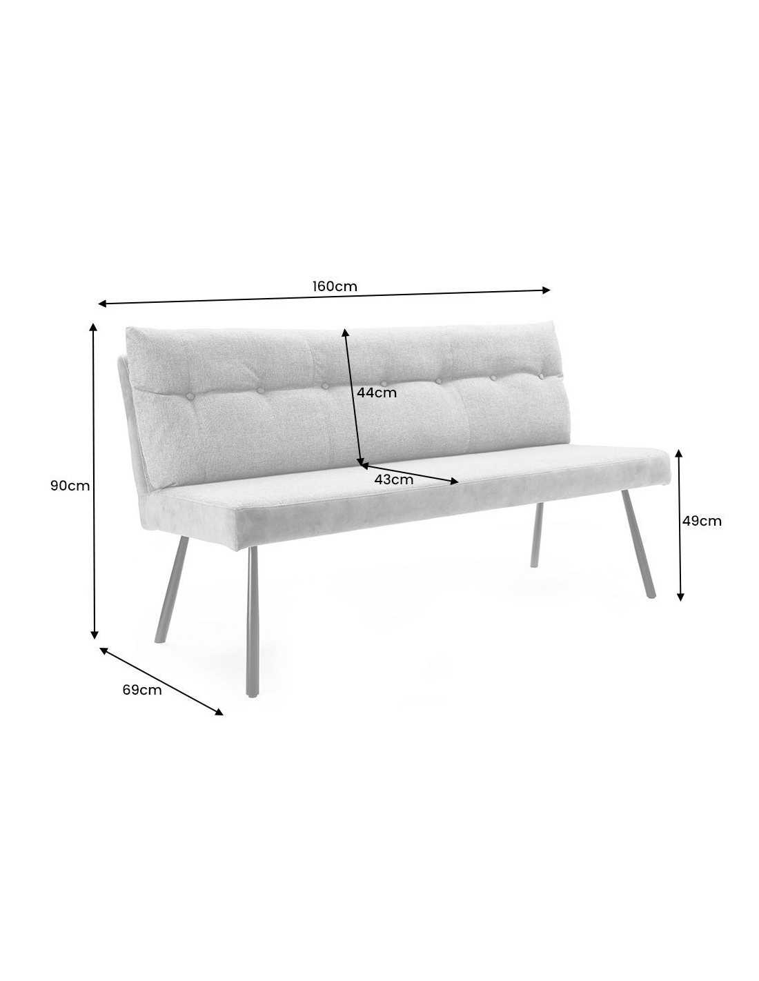 Lyra-bänken förvandlar din matplats till en elegant loungemiljö med sin djupa antracitton och sobra design. Den generösa sittytan och den höga ryggen ger skön komfort för långa middagar och sociala stunder. Den stoppade bänken har en sits i mjuk sammetsklädsel och en utsida i tåligt flatvävt tyg, båda i 100% polyester för enkel skötsel. Fjäderkärnsstoppning ger behaglig och hållbar sittkomfort, perfekt som matbänkssoffa eller hallbänk. Den antracitgrå textilen kombinerat med svarta ben skapar ett modernt uttryck som passar i såväl nordisk som industriell inredning. En stilren sittbänk som tål vardagens användning och klarar en maxbelastning på 280 kg. Mått (ca.): Bredd x Höjd x Djup: 160 x 90 x 69 cm Sitt höjd: 49 cm Ryggstödets höjd: 44 cm Sittyta: 160 x 43 cm Vikt: 28.58 kg