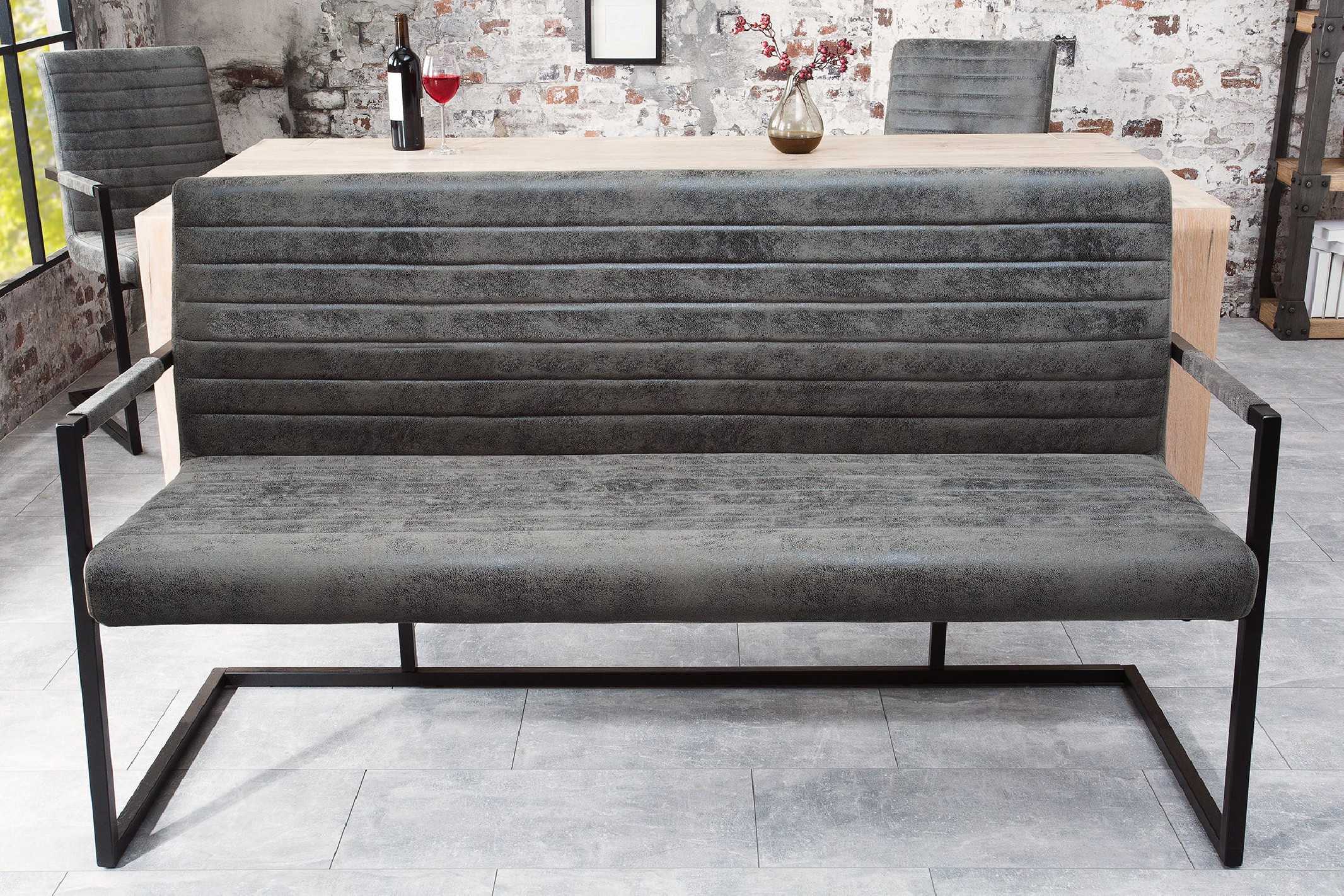 Lyra bänk med armstöd i vintagegrå microfiber ger din matplats eller hall en stilfull, industriell känsla med mjuk sittkomfort. Den generösa längden på 160 cm gör den perfekt för både sociala middagar och avslappnade stunder. Den slitstarka klädseln i microfiber av 100% polyester är lätt att hålla ren och ger en behagligt mjuk yta som påminner om vintage-läder. Det robusta underredet i järn skapar en stabil och hållbar konstruktion som tål vardagens användning, samtidigt som det ger bänken en modern loft- och industrikänsla. Som matbänk eller hallbänk blir denna sittbänk ett stilrent alternativ till traditionella stolar och kompletterar perfekt ett matbord i trä eller metall. Mått: Bredd x Höjd x Djup 160 x 88 x 63 cm