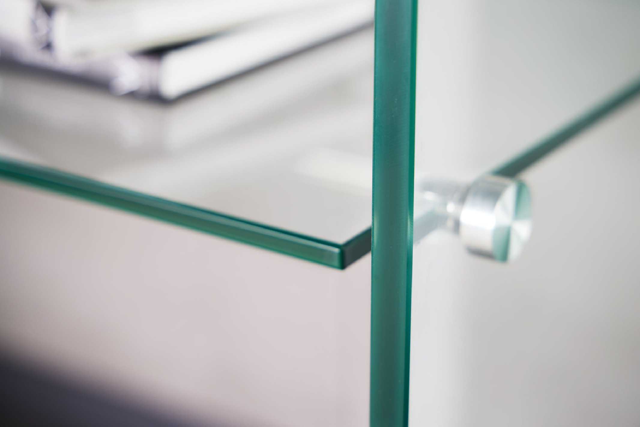 Nebula är ett svävande konsolbord i kristallklart glas som ger rummet en lätt och luftig känsla. Den minimalistiska designen smälter in i alla inredningsstilar och lyfter fram dina favoritdetaljer med elegant enkelhet. Bordet är tillverkat i 12mm härdat glas som ger en stabil och säker konstruktion samtidigt som det behåller ett exklusivt, nätt uttryck. Den transparenta ytan gör att detta glasbord passar perfekt som konsolbord i hall, vardagsrum eller bakom soffan utan att ta visuell plats. Tack vare sin robusta uppbyggnad har konsolbordet en max belastning på ca 60 kg, vilket gör det både praktiskt och hållbart i vardagen. Mått: Bredd 100 cm x Höjd 75 cm x Djup 33 cm