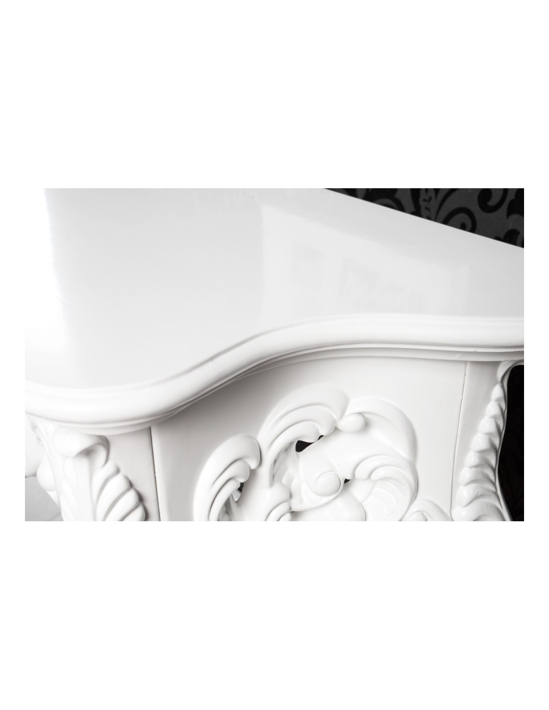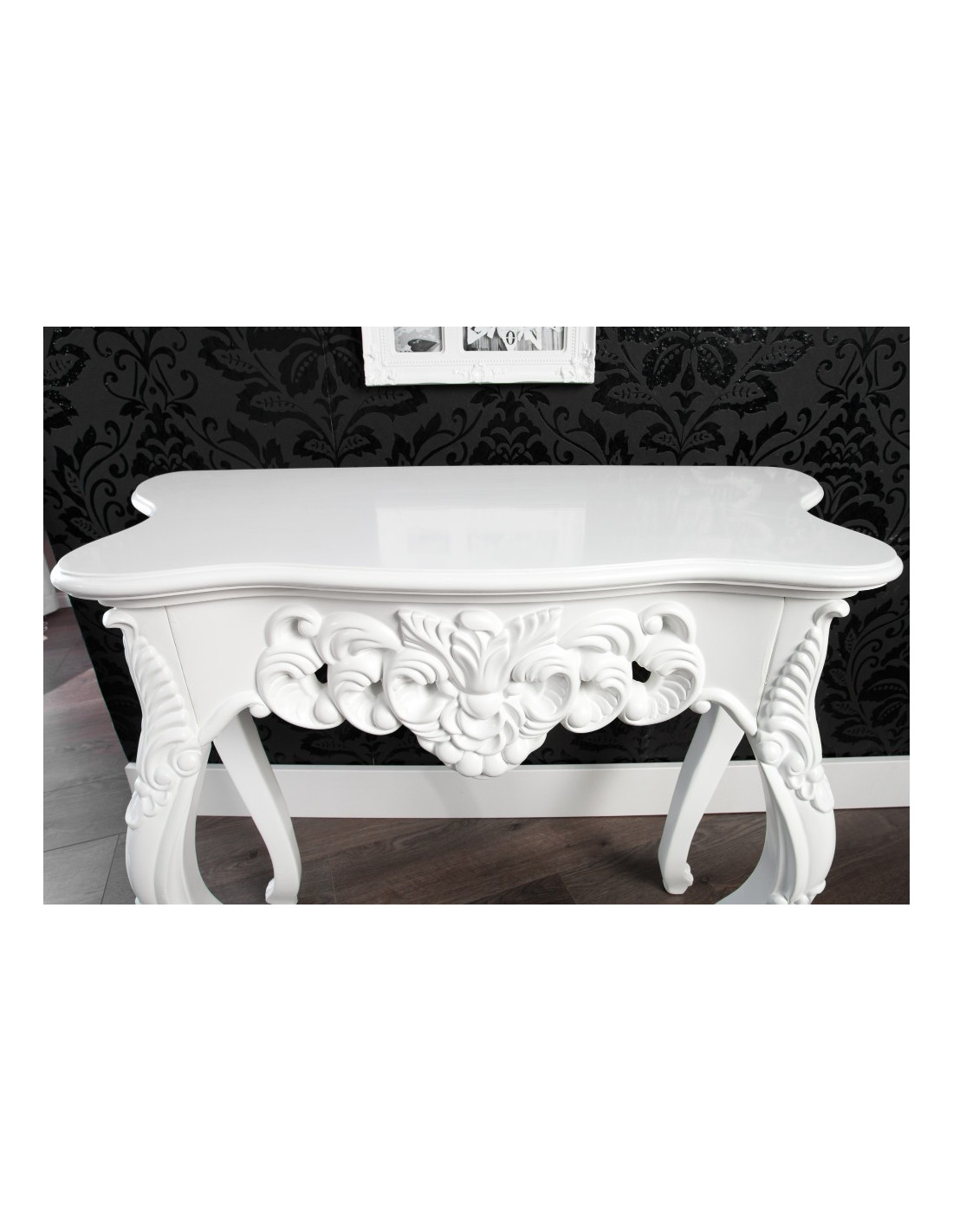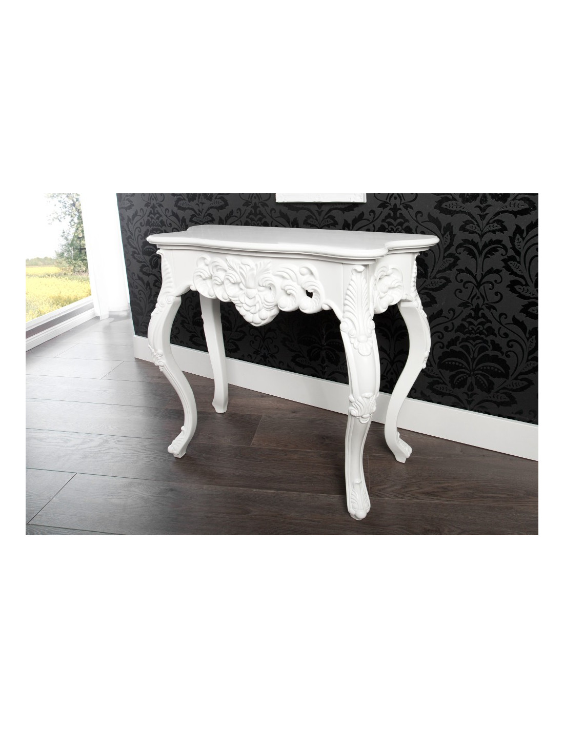 Den eleganta konsolen FIRENZE kombinerar moderna designkrav med en stil i barock och rokoko. De handgjorda vackra ornamenten gör detta till en garanterad blickfångare i ditt hem och den antika finishen skapar ett charmigt och klassiskt intryck. Varje möbel är ett unikt hantverk.