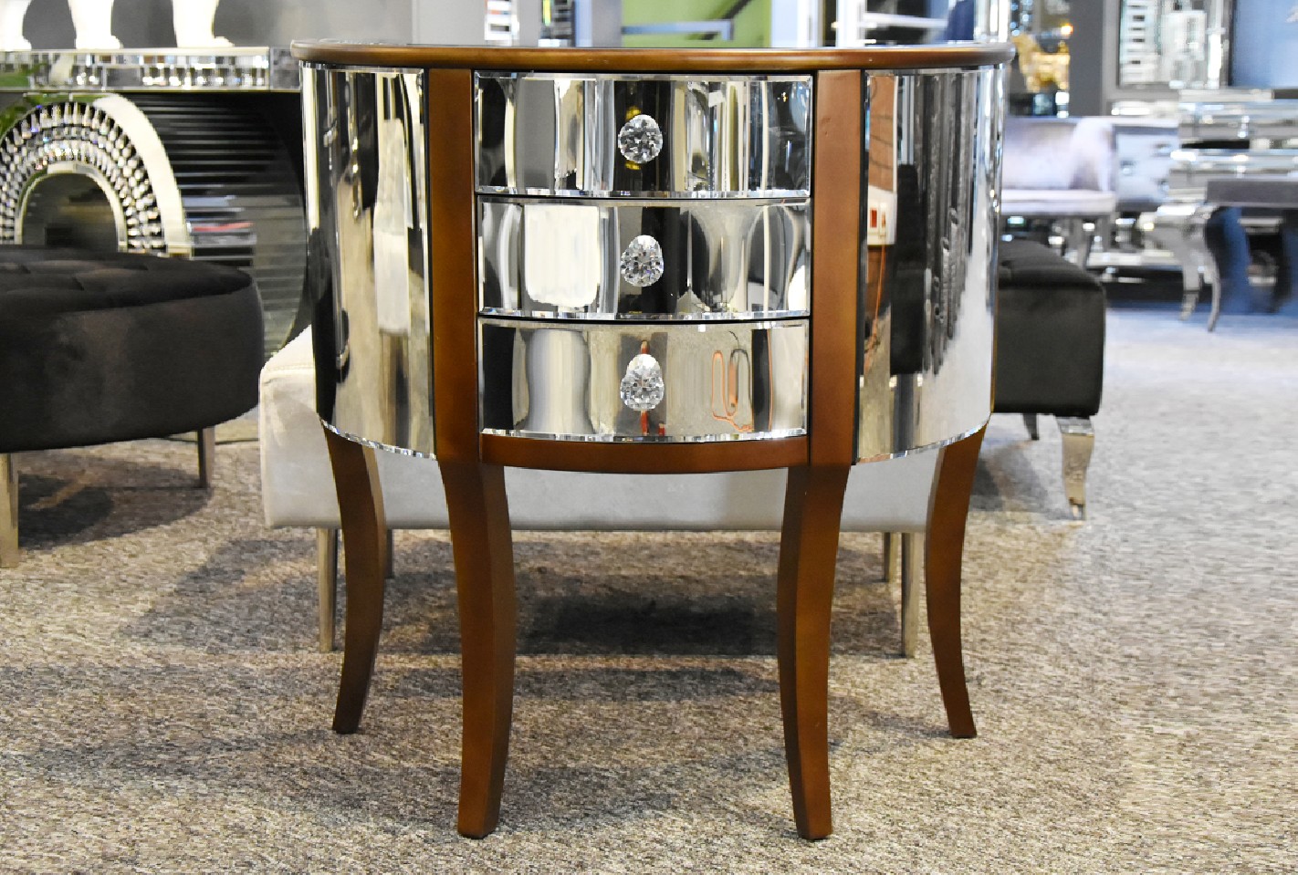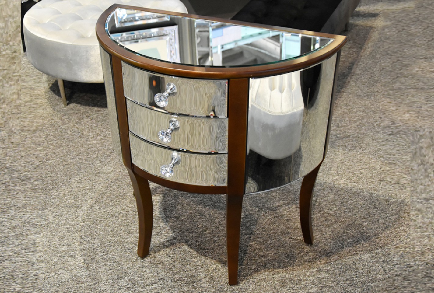 HALVCIRKULÄR BYRÅ I SPEGELGLAS