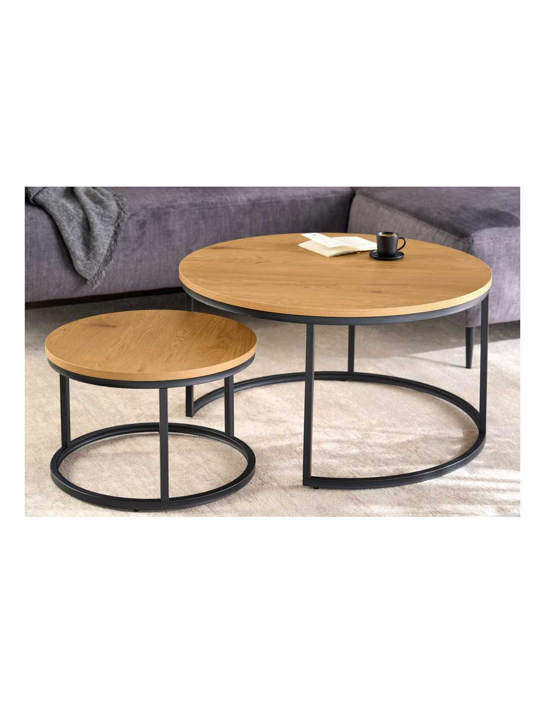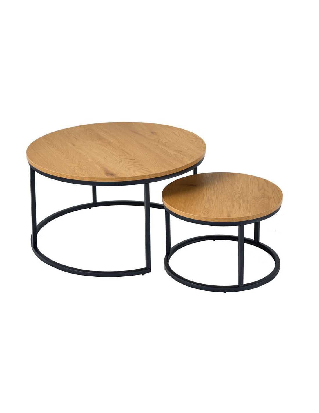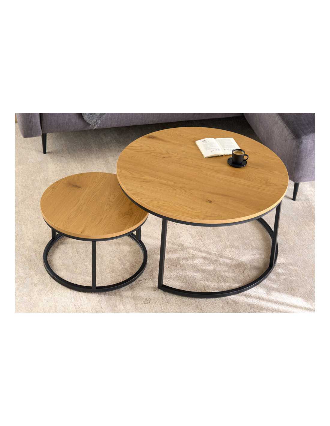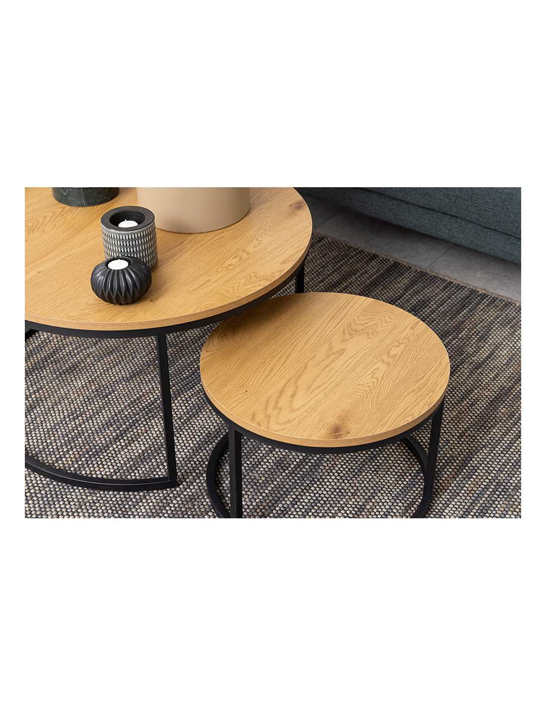 Lyra soffbordsset förvandlar vardagsrummet med en elegant mix av vild eklook och svart metall. De två borden skapar en luftig, modern känsla och ger en naturlig värme som lyfter hela rummet. Perfekt både för avslappnade kvällar och spontan bjudning. Detta set med soffbord i vild eklook är tillverkat i belagd MDF som ger ett tåligt, lättskött bord med ett naturligt träintryck. Underredet i svart, pulverlackerad metall ger stabilitet och en stilren, industriell touch som passar lika bra till en modern soffa som till en mysig hörna. Som nättt soffbord set om 2 är Lyra lätt att möblera med – använd dem tillsammans som ett större soffbord eller dela upp dem i rummet för flexibel yta till kaffe, böcker och inredningsdetaljer. Ett idealiskt val för dig som söker ett stilrent soffbord i eklook med praktisk funktion. Mått: Bredd: 80 cm (största bordet) Höjd: uppgift saknas Djup: uppgift saknas Max. belastning: 20 kg Nettovikt: 12.84 kg