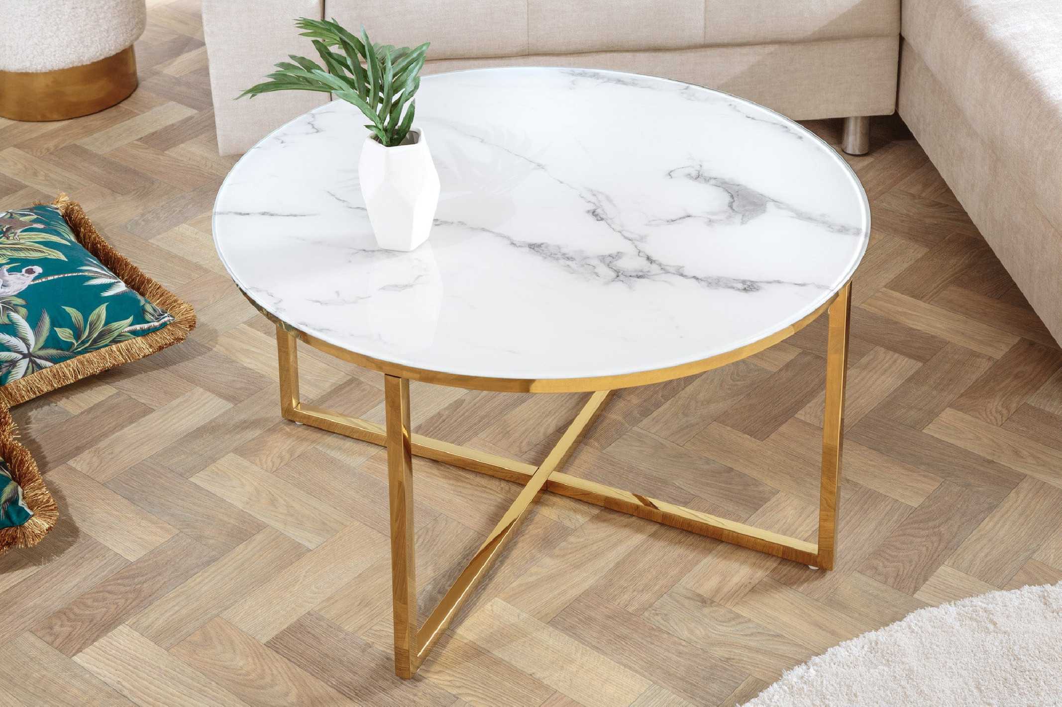 80CM SOFFBORD, VIT MARMORLOOK & GULDFÄRGAD METALL