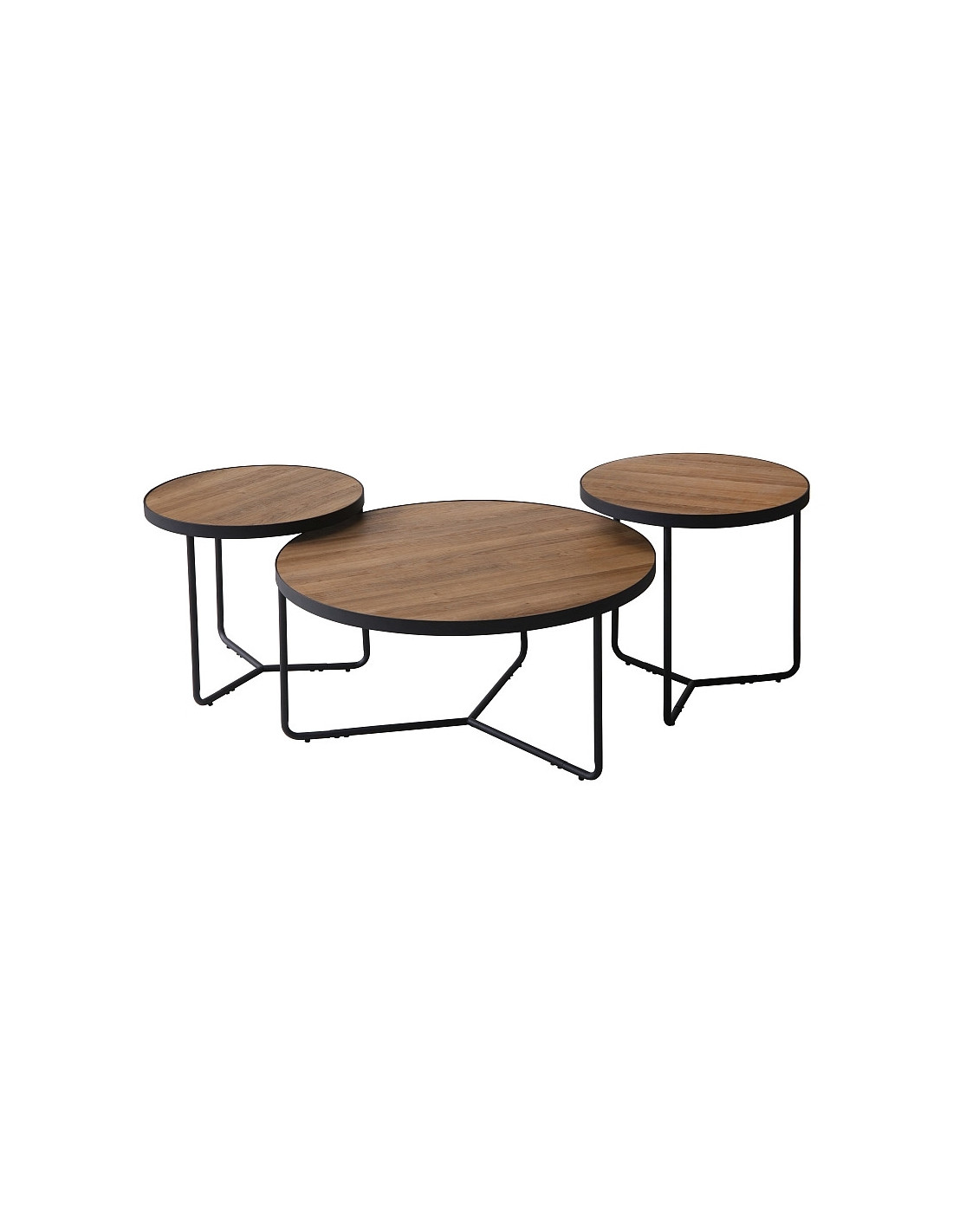 80CM RUND LÅGSOFFBORDSSET, VALNÖT/SVART METALL