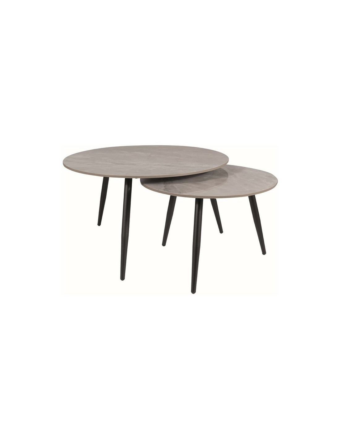 SIERRA C är ett stilrent runt soffbordsset med två matchande bord i modern design. Den grå keramikskivan i kombination med det svarta metallunderredet ger ett sobert och exklusivt uttryck som passar lika bra i vardagsrummet som i loungen. De två borden kan användas tillsammans som set eller separeras för flexibel möblering.