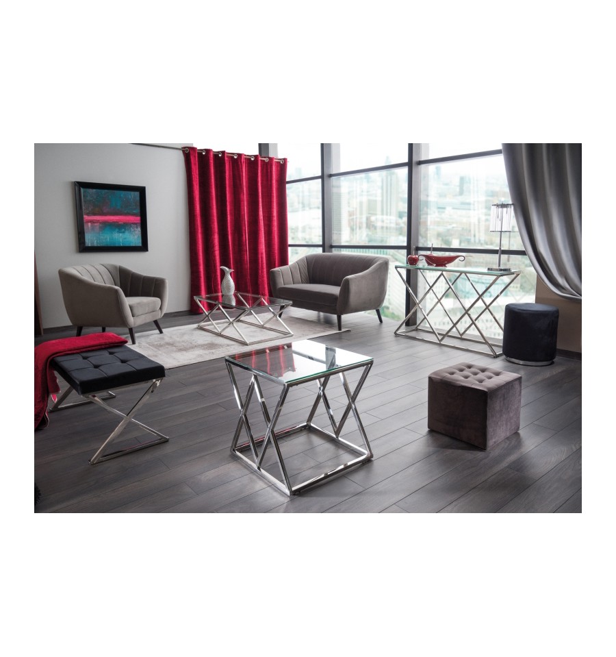TRIVERO är ett snyggt och stilrent soffbord i spännande design. Bordet är tillverkat i tempererat glas tillsammans med en ram i rostfritt stål som skapar en modern och tidlös look.