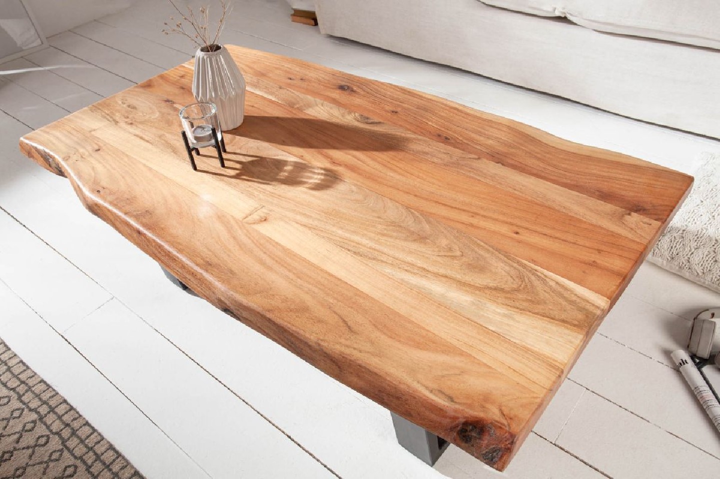 JURA är ett snyggt och stilrent soffbord i massiv akaciaträ. Det handgjorda hantverket gör att varje pjäs får en unik look och metallbenen ger bordet en industriell look. Bordsskivan har en tjocklek på hela 35 mm.